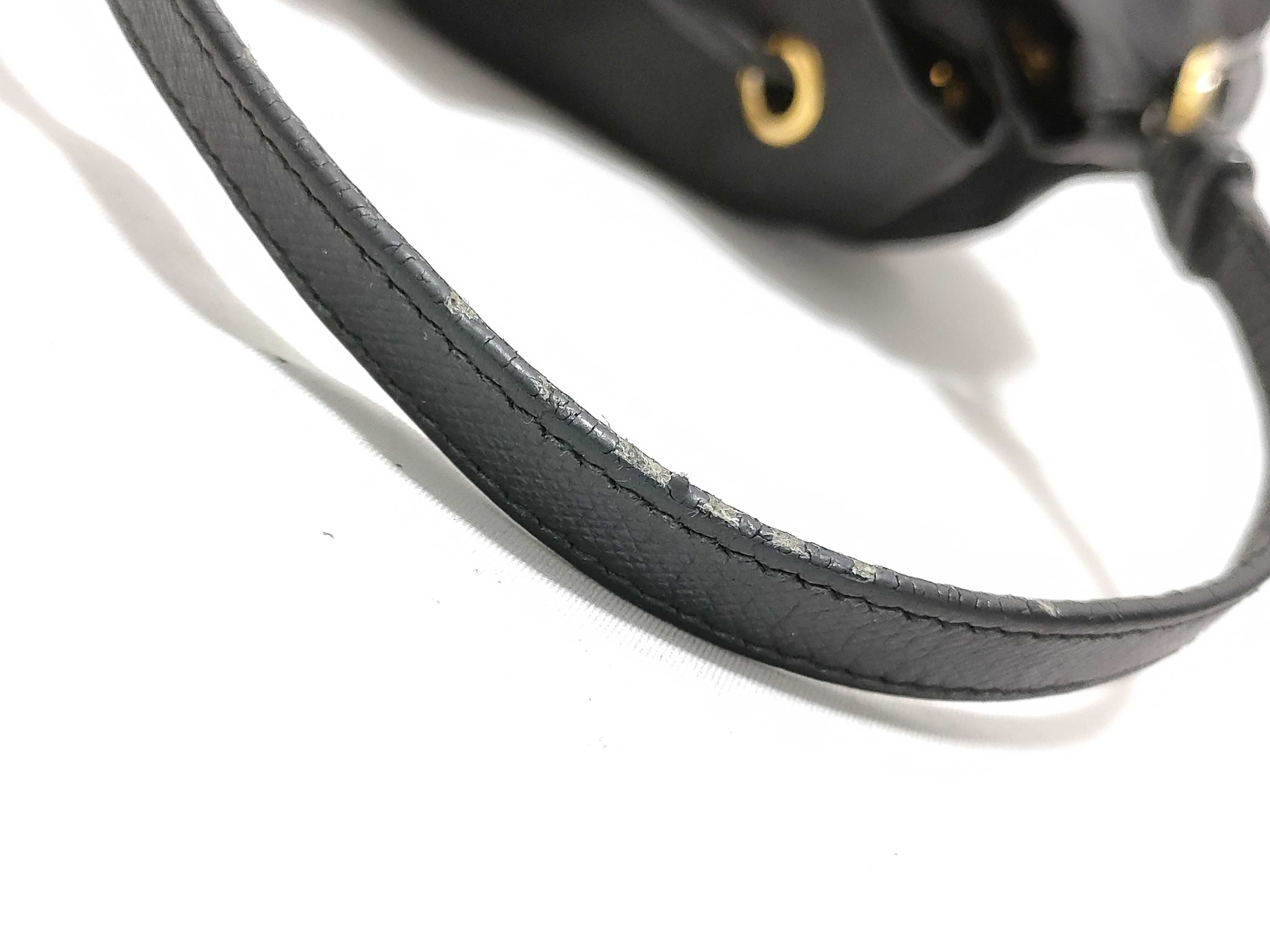 全体擦れ(中) ラメ付着(中) 持ち手擦れ黒ずみ汚れ(大) ヒビ(中) コバ剥げヒビ(中) 付け根剥げ(中) 内側擦れ毛羽立ち(中) ショルダーコバヒビ(中) 金具傷剥げ(中)【付属品