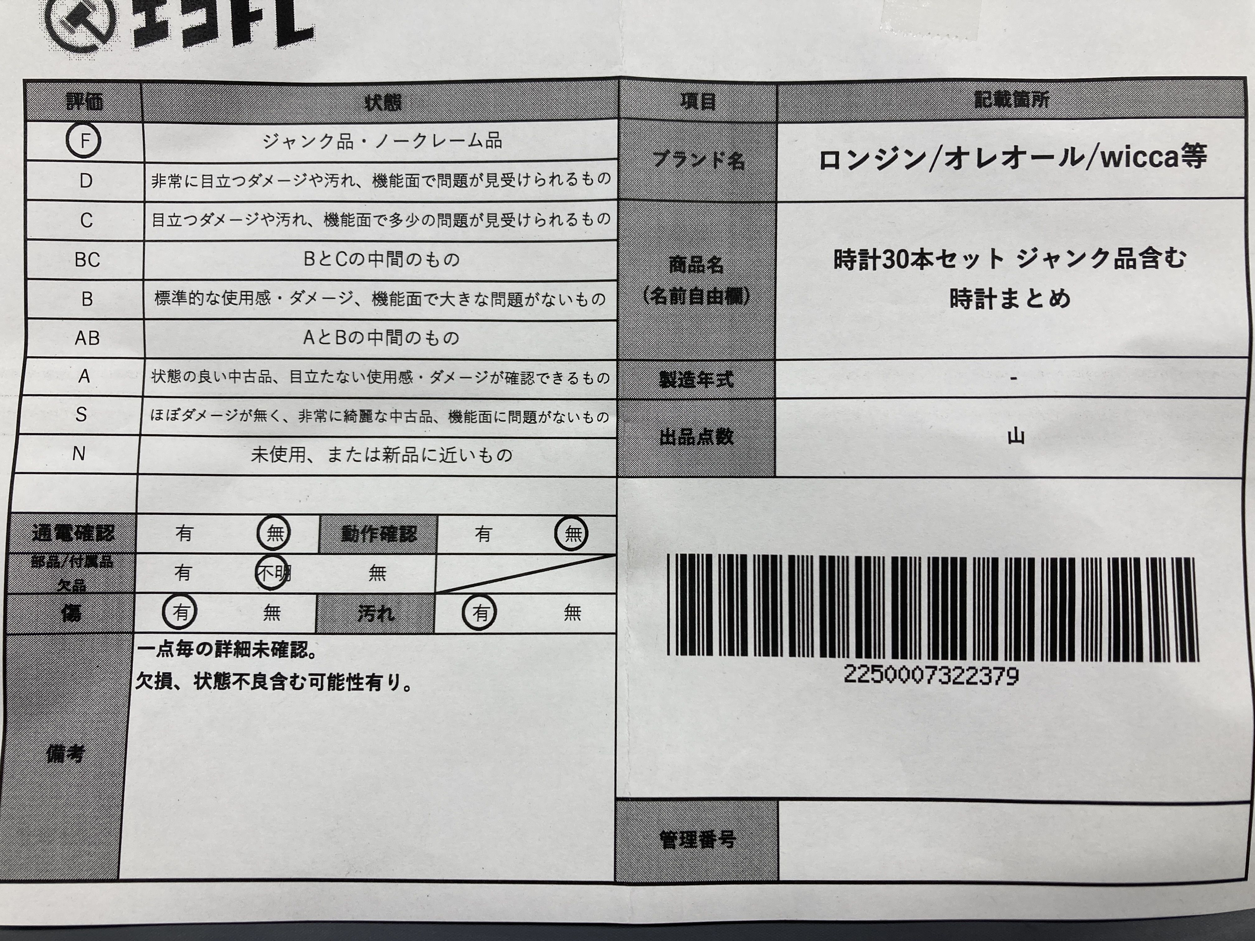拍品等级
