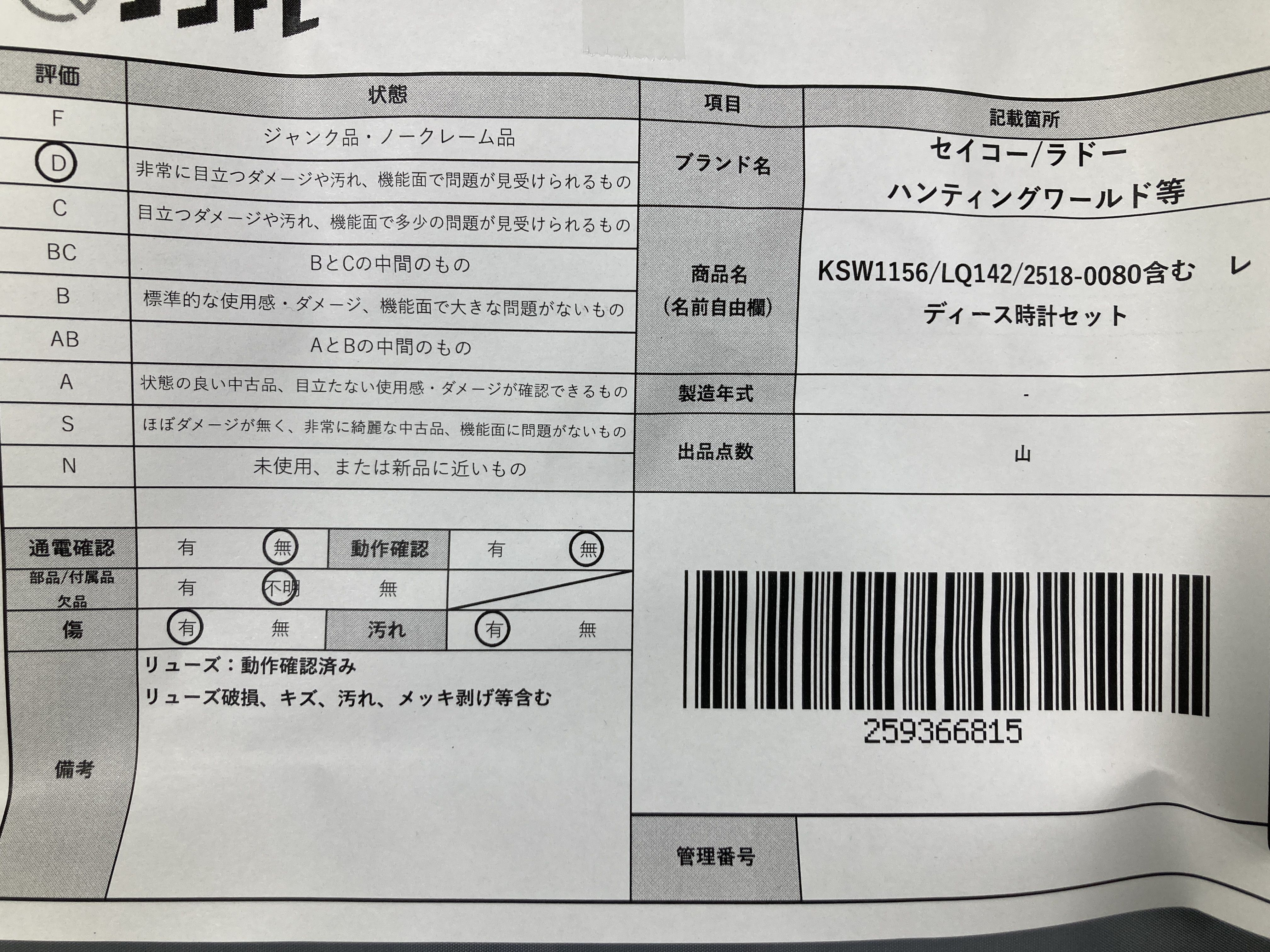 ▼SHIPPING TO JPN ONLY▼ セイコー/ラドー/ハンティングワールド等 KSW1156/LQ142/2518-0080含む レディース時計セット","タイプライン":"","カテゴリ":"時計","形状コード":"レディース腕時計","付属品コード":"","シリアル・シール・型番":""