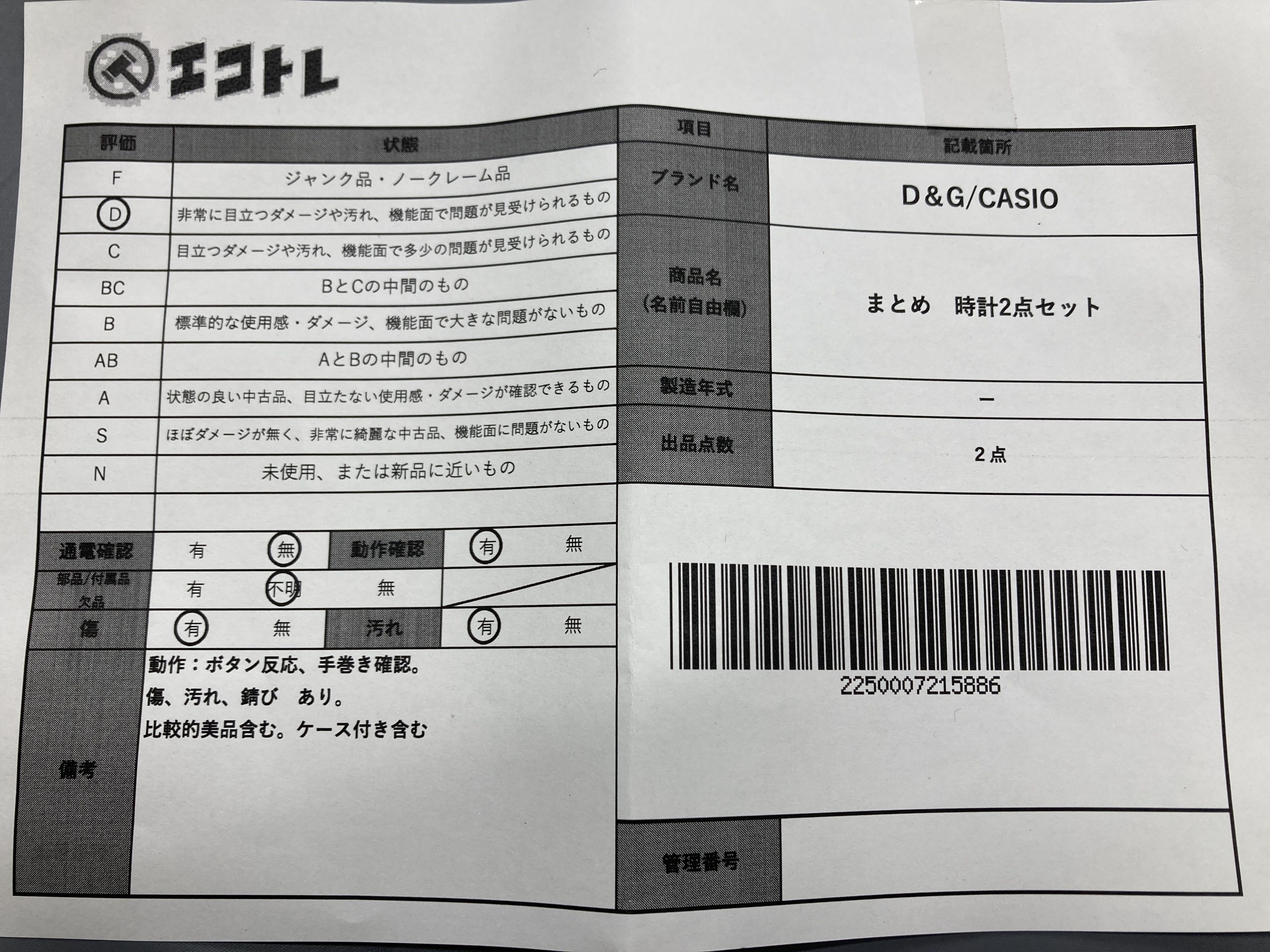 ▼SHIPPING TO JPN ONLY▼ まとめ 時計2点セット D&G CASIO","タイプライン":"","カテゴリ":"時計","形状コード":"時計まとめ","付属品コード":"","シリアル・シール・型番":""