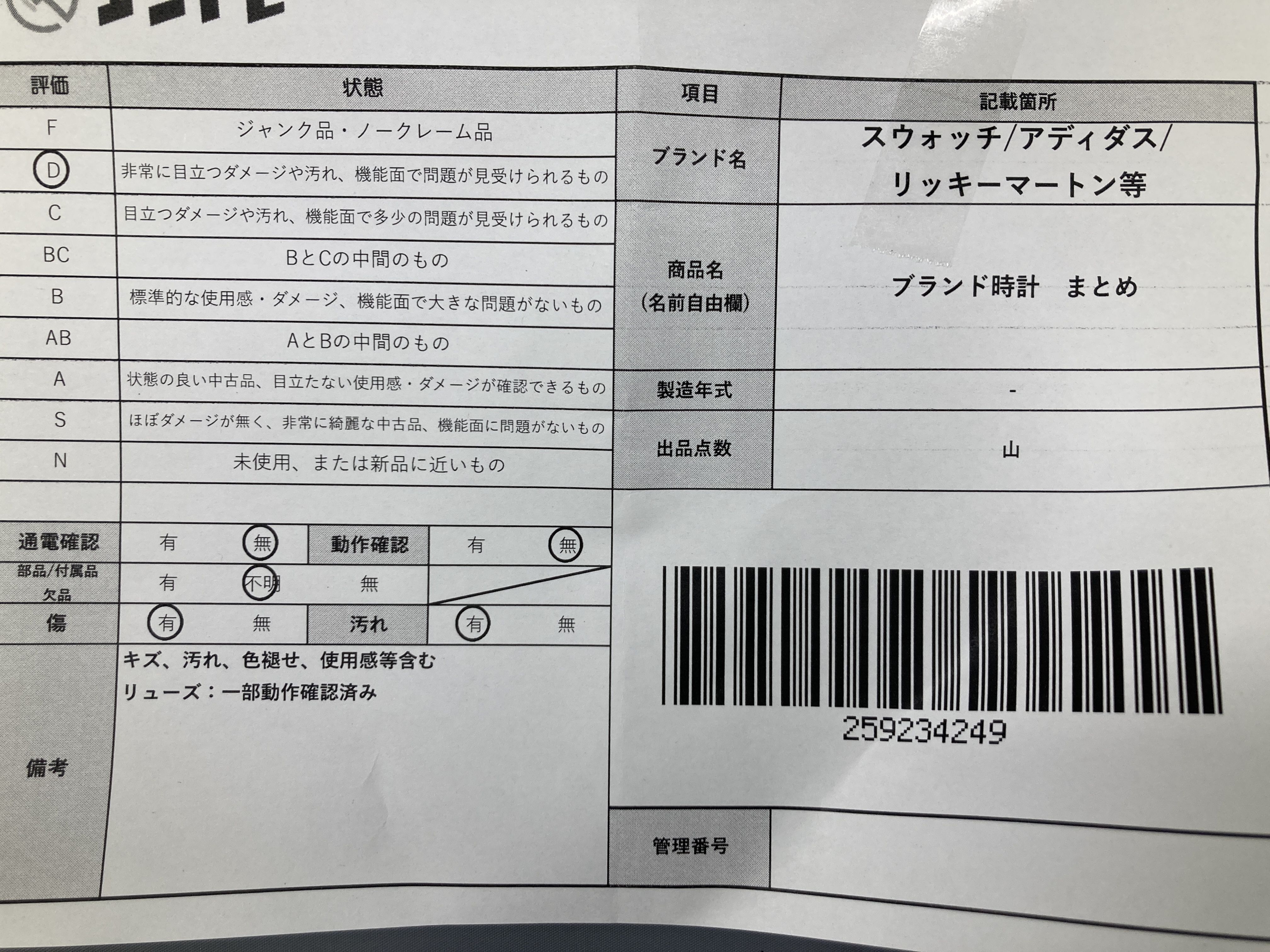 ▼SHIPPING TO JPN ONLY▼ ブランド時計 まとめ スウォッチ/アディダス/リッキーマートン等","タイプライン":"","カテゴリ":"時計","形状コード":"時計まとめ","付属品コード":"","シリアル・シール・型番":""