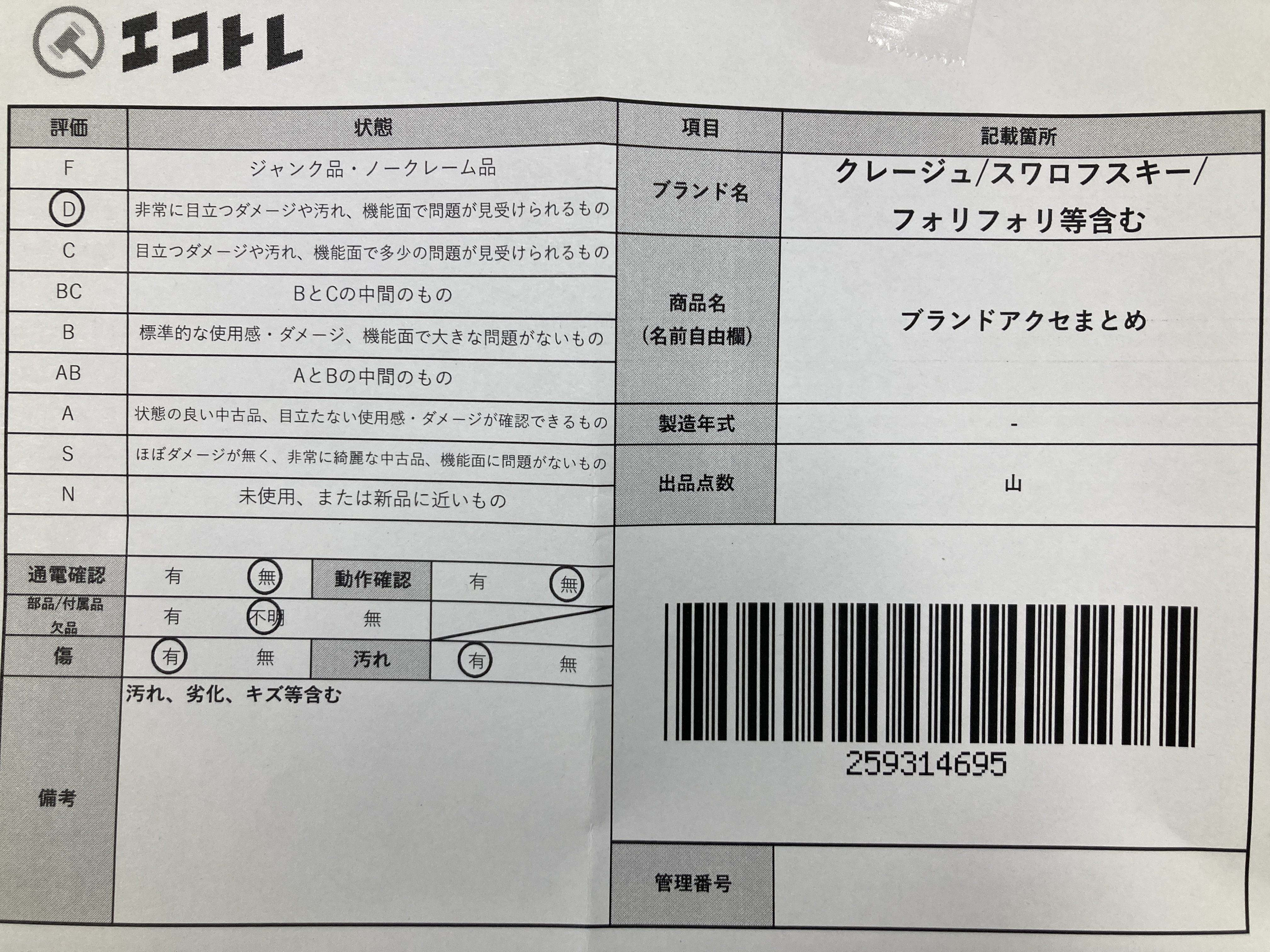 ▼SHIPPING TO JPN ONLY▼ クレージュ/スワロフスキー/フォリフォリ等含む ブランドアクセまとめ","タイプライン":"","カテゴリ":"アクセサリー","形状コード":"アクセサリーまとめ","付属品コード":"","シリアル・シール・型番":""