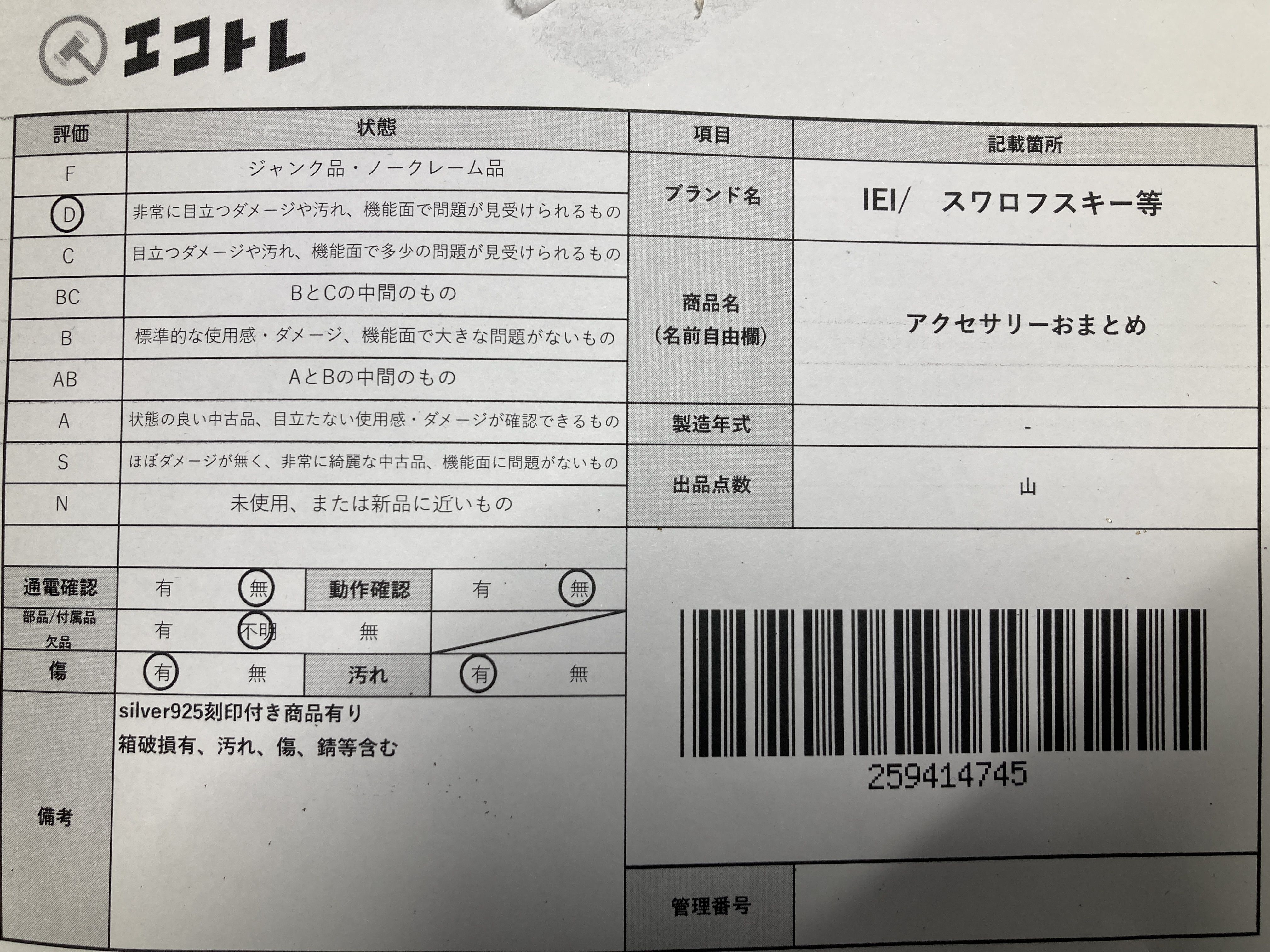▼SHIPPING TO JPN ONLY▼ IEI/ スワロフスキー等 アクセサリーおまとめ","タイプライン":"","カテゴリ":"アクセサリー","形状コード":"アクセサリーまとめ","付属品コード":"","シリアル・シール・型番":""