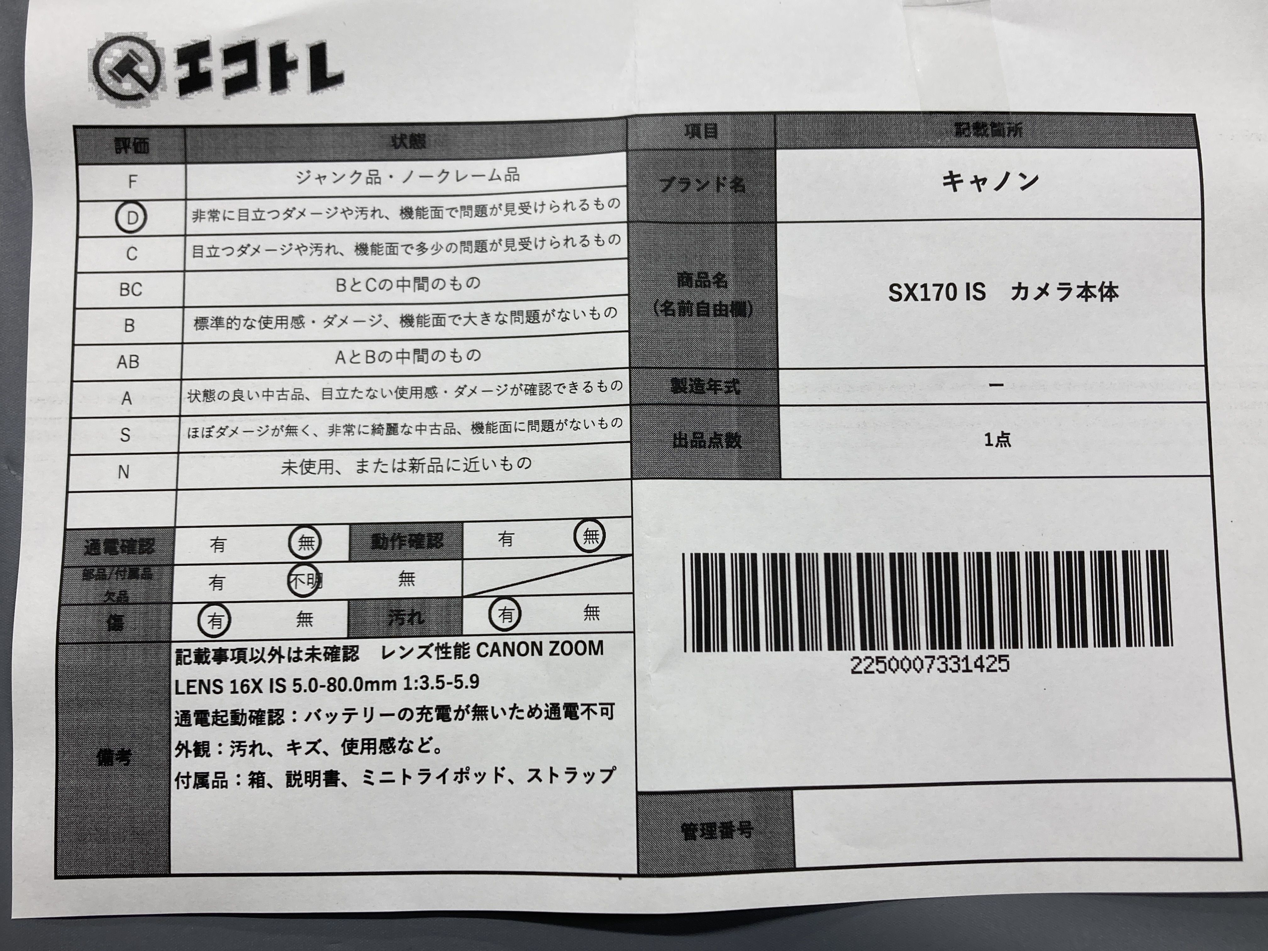 ▼SHIPPING TO JPN ONLY▼ キャノン SX170 IS","タイプライン":"","カテゴリ":"カメラ","形状コード":"カメラ","付属品コード":"","シリアル・シール・型番":""