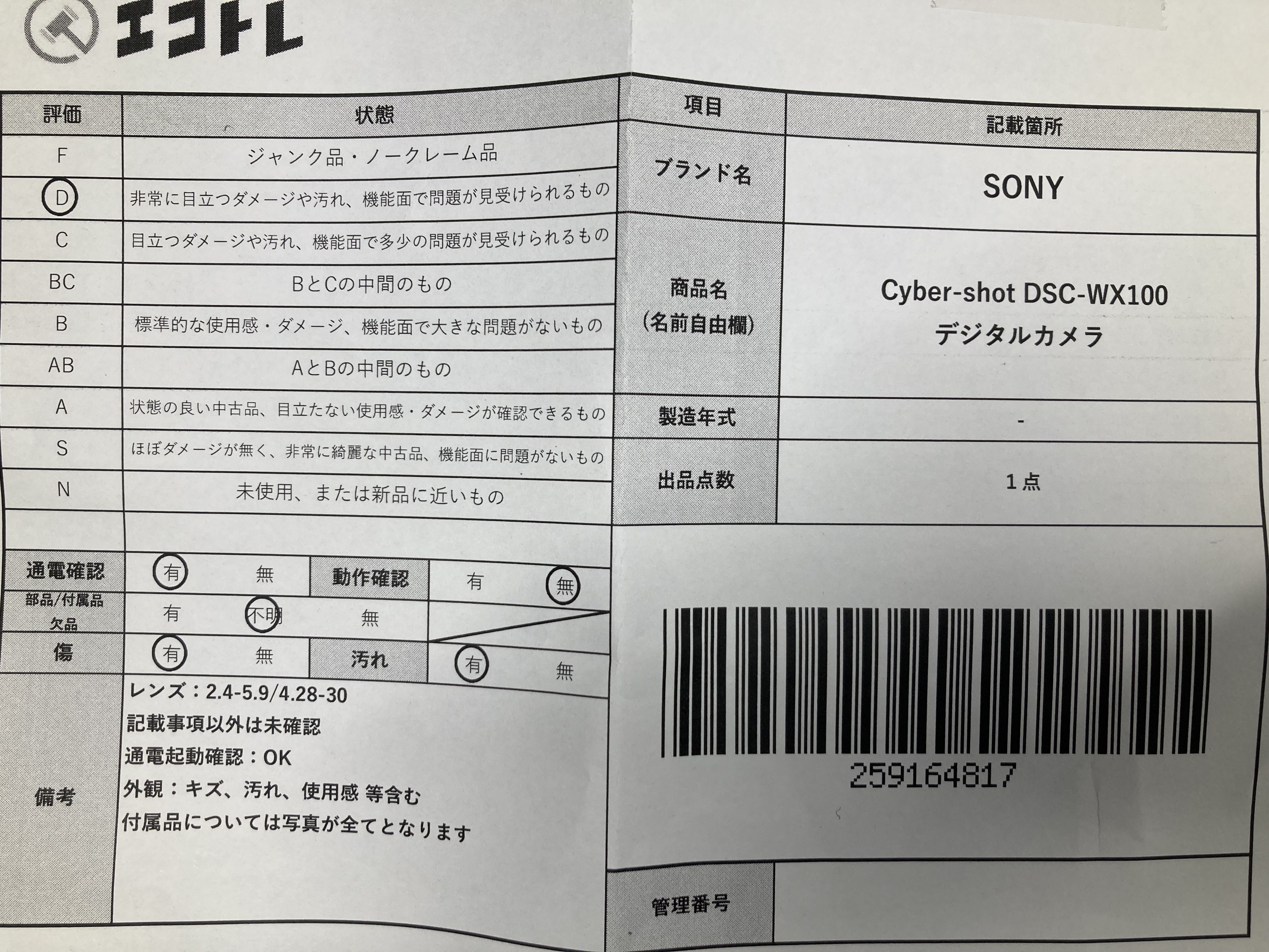 ▼SHIPPING TO JPN ONLY▼ SONY Cyber-shot DSC-WX100 デジタルカメラ","タイプライン":"","カテゴリ":"カメラ","形状コード":"カメラ","付属品コード":"","シリアル・シール・型番":""