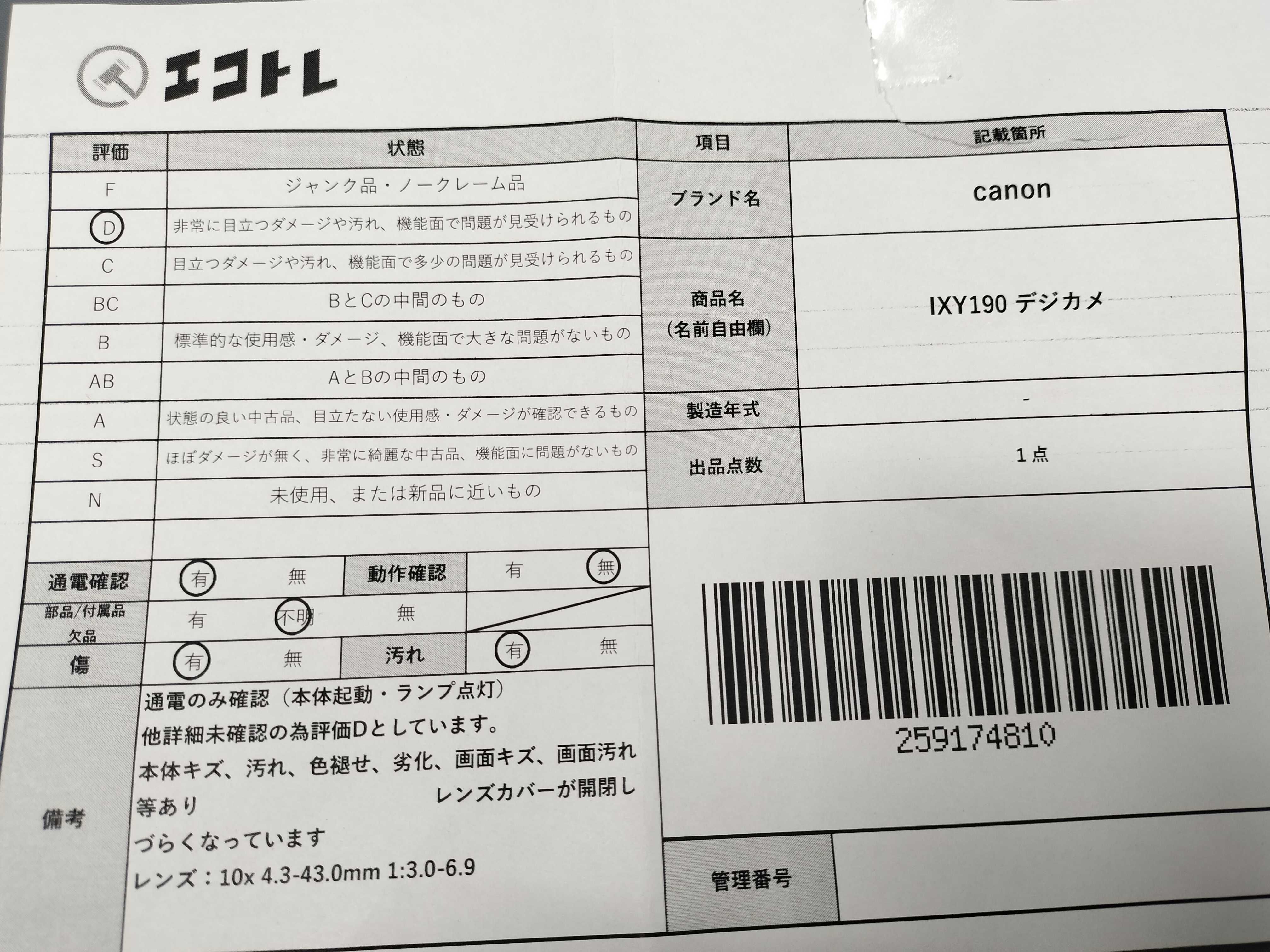 ▼SHIPPING TO JPN ONLY▼ IXY190 デジカメ canon","タイプライン":"","カテゴリ":"カメラ","形状コード":"カメラ","付属品コード":"","シリアル・シール・型番":""