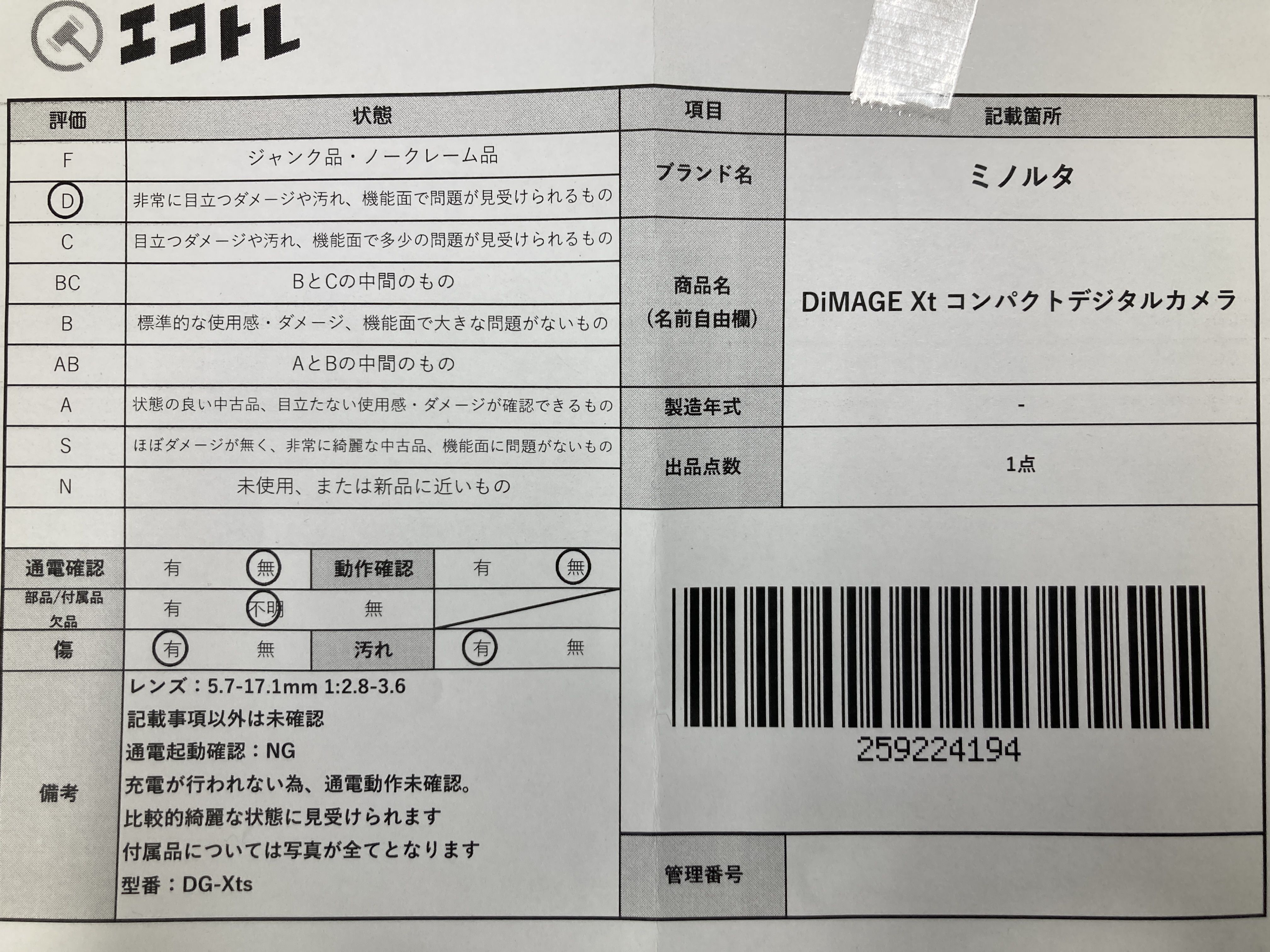 ▼SHIPPING TO JPN ONLY▼ ミノルタ DiMAGE Xt コンパクトデジタルカメラ","タイプライン":"","カテゴリ":"カメラ","形状コード":"カメラ","付属品コード":"","シリアル・シール・型番":""