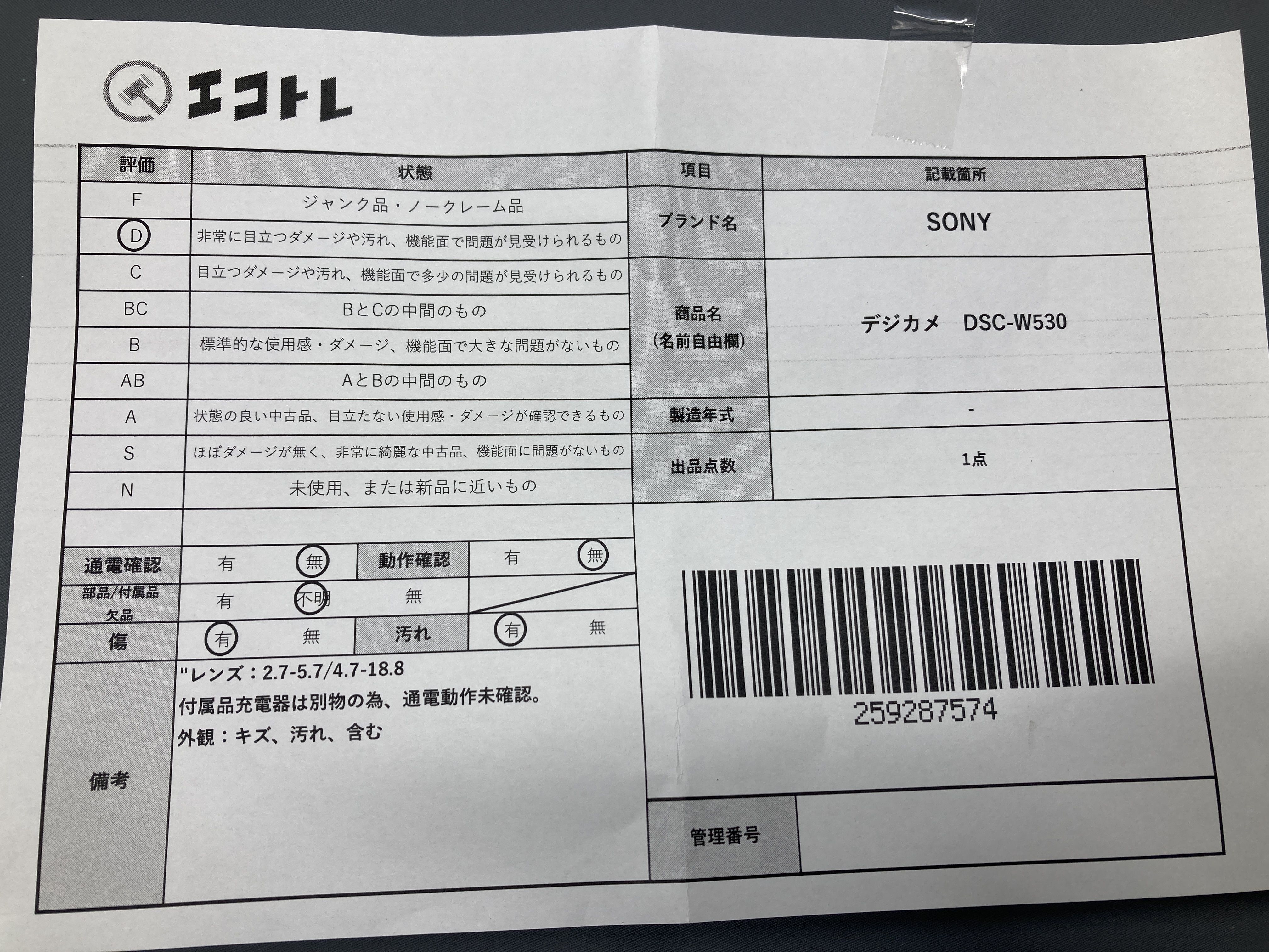 ▼SHIPPING TO JPN ONLY▼ SONY デジカメ DSC-W530","タイプライン":"","カテゴリ":"カメラ","形状コード":"カメラ","付属品コード":"","シリアル・シール・型番":""