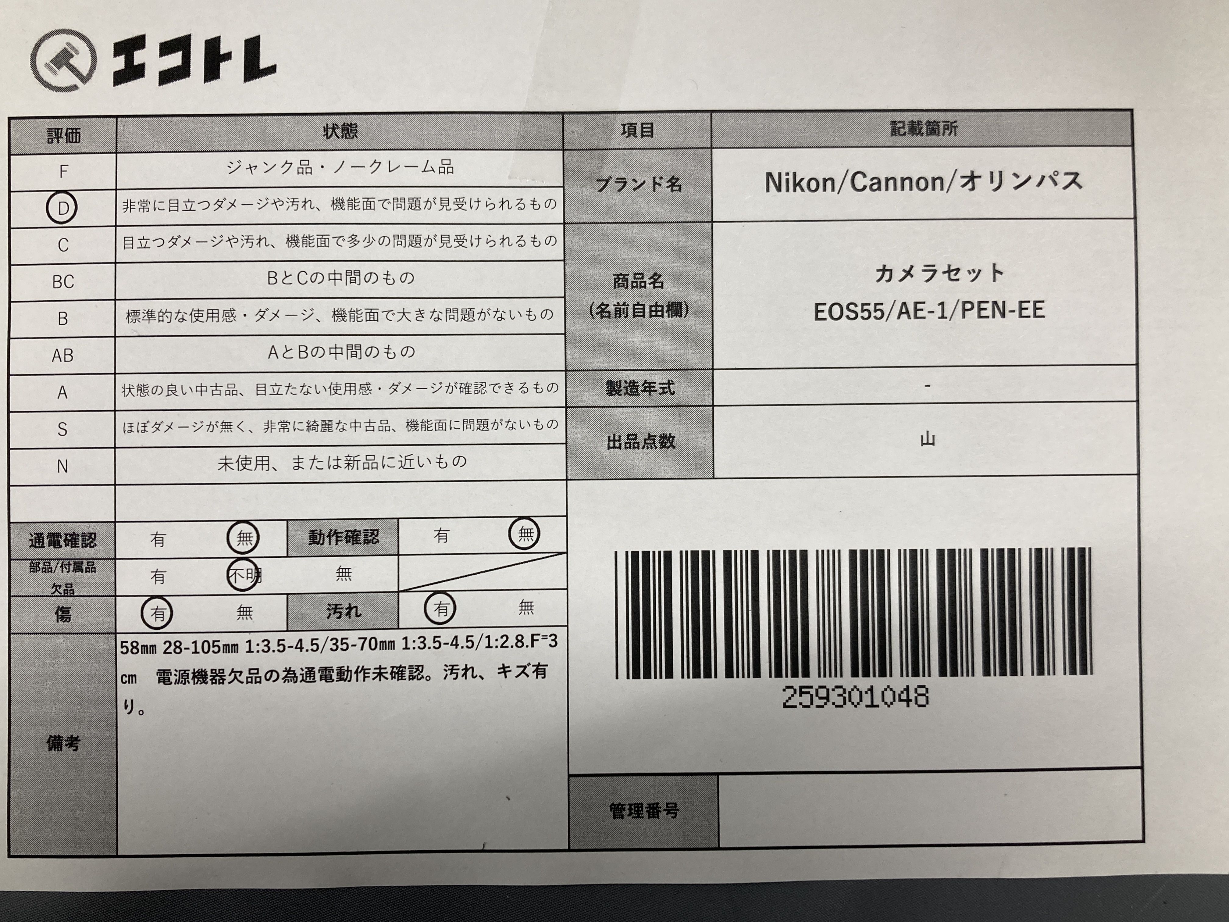 ▼SHIPPING TO JPN ONLY▼ Nikon/Cannon/オリンパス EOS55/AE-1/PEN-EE カメラセット","タイプライン":"","カテゴリ":"カメラ","形状コード":"カメラ","付属品コード":"","シリアル・シール・型番":""