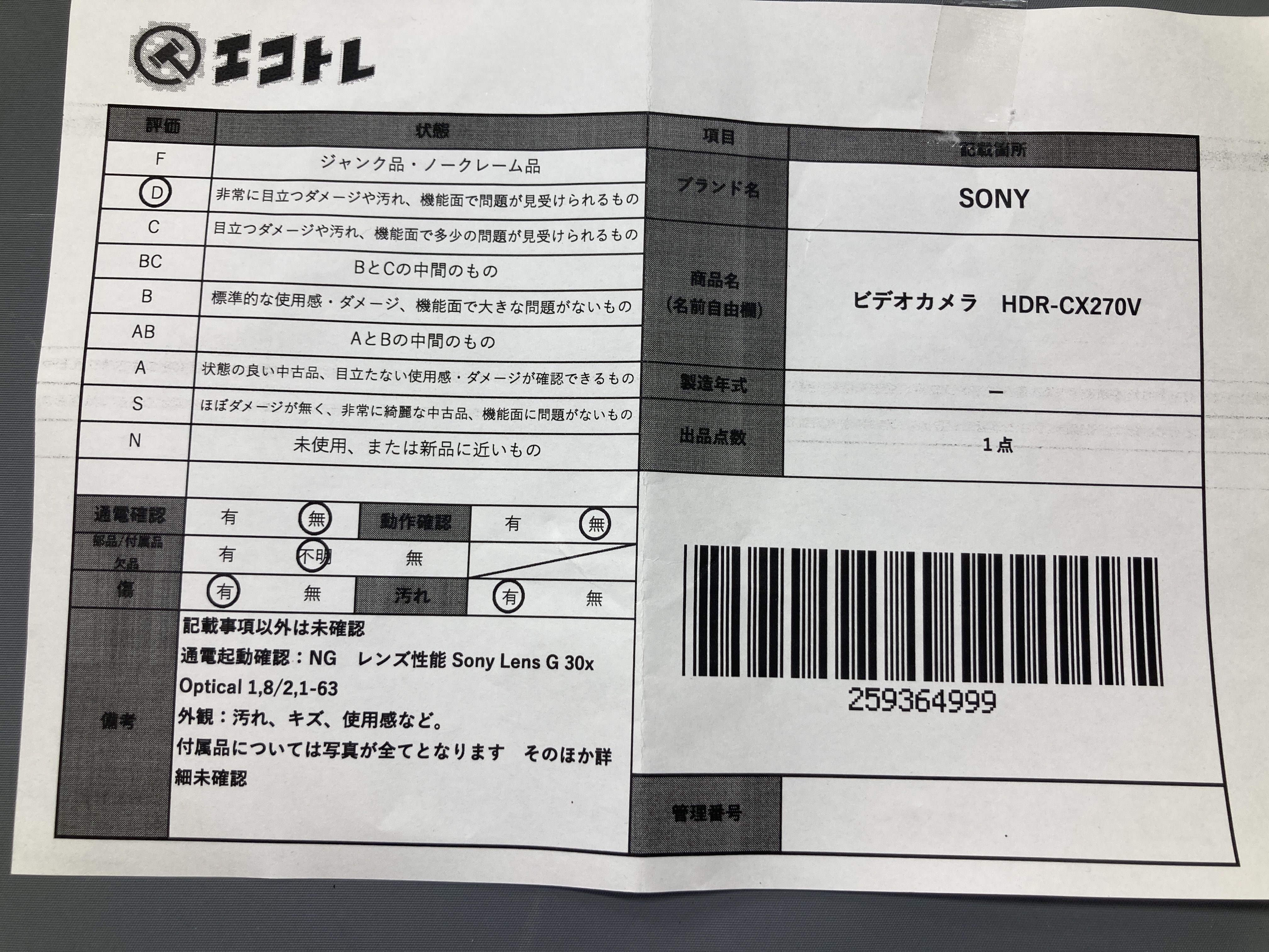 ▼SHIPPING TO JPN ONLY▼ SONY ビデオカメラ HDR-CX270V","タイプライン":"","カテゴリ":"カメラ","形状コード":"カメラ","付属品コード":"","シリアル・シール・型番":""