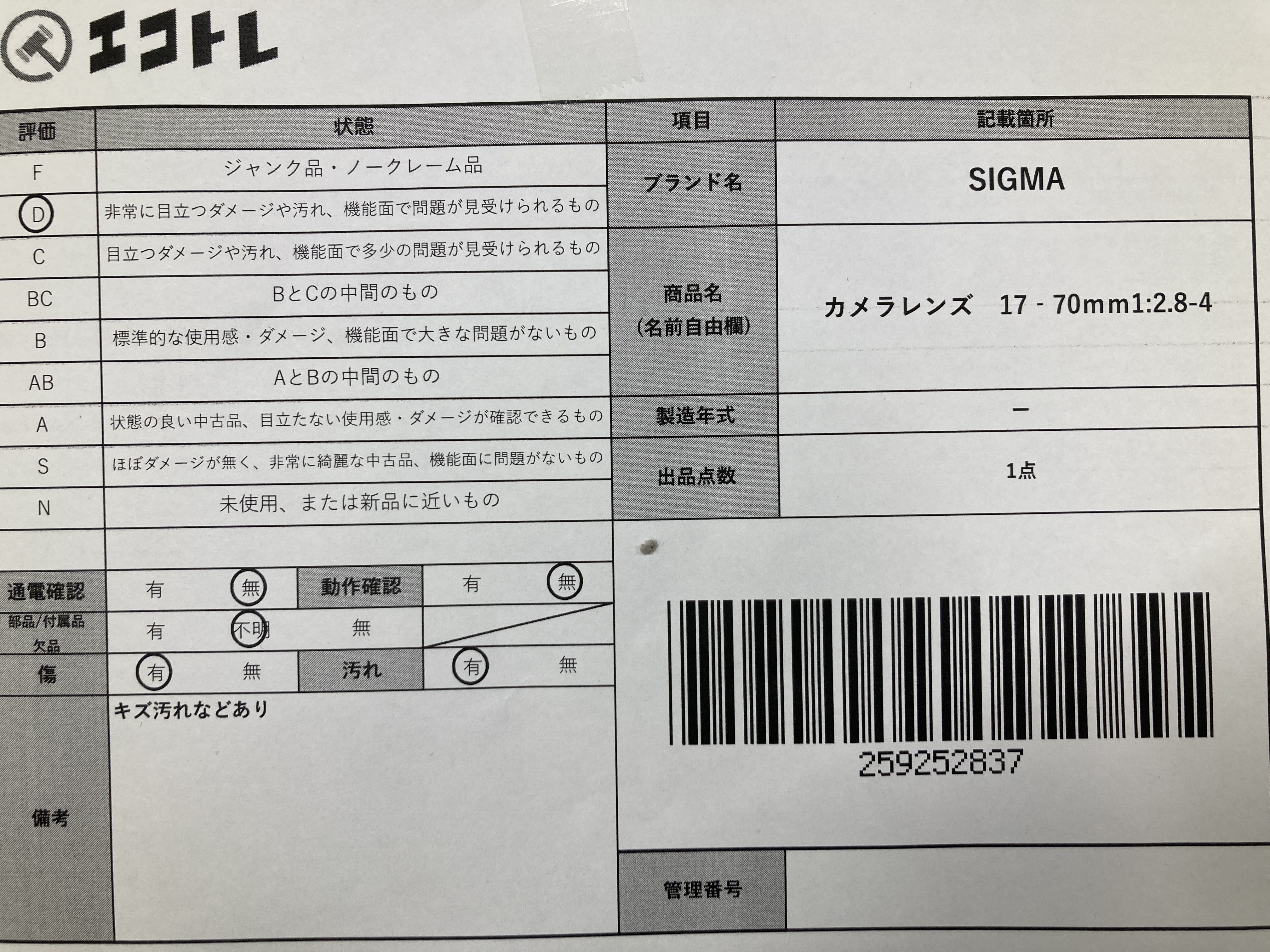 ▼SHIPPING TO JPN ONLY▼ SIGMA カメラレンズ 17‐70mm1:2.8-4","タイプライン":"","カテゴリ":"カメラ","形状コード":"レンズ","付属品コード":"","シリアル・シール・型番":""