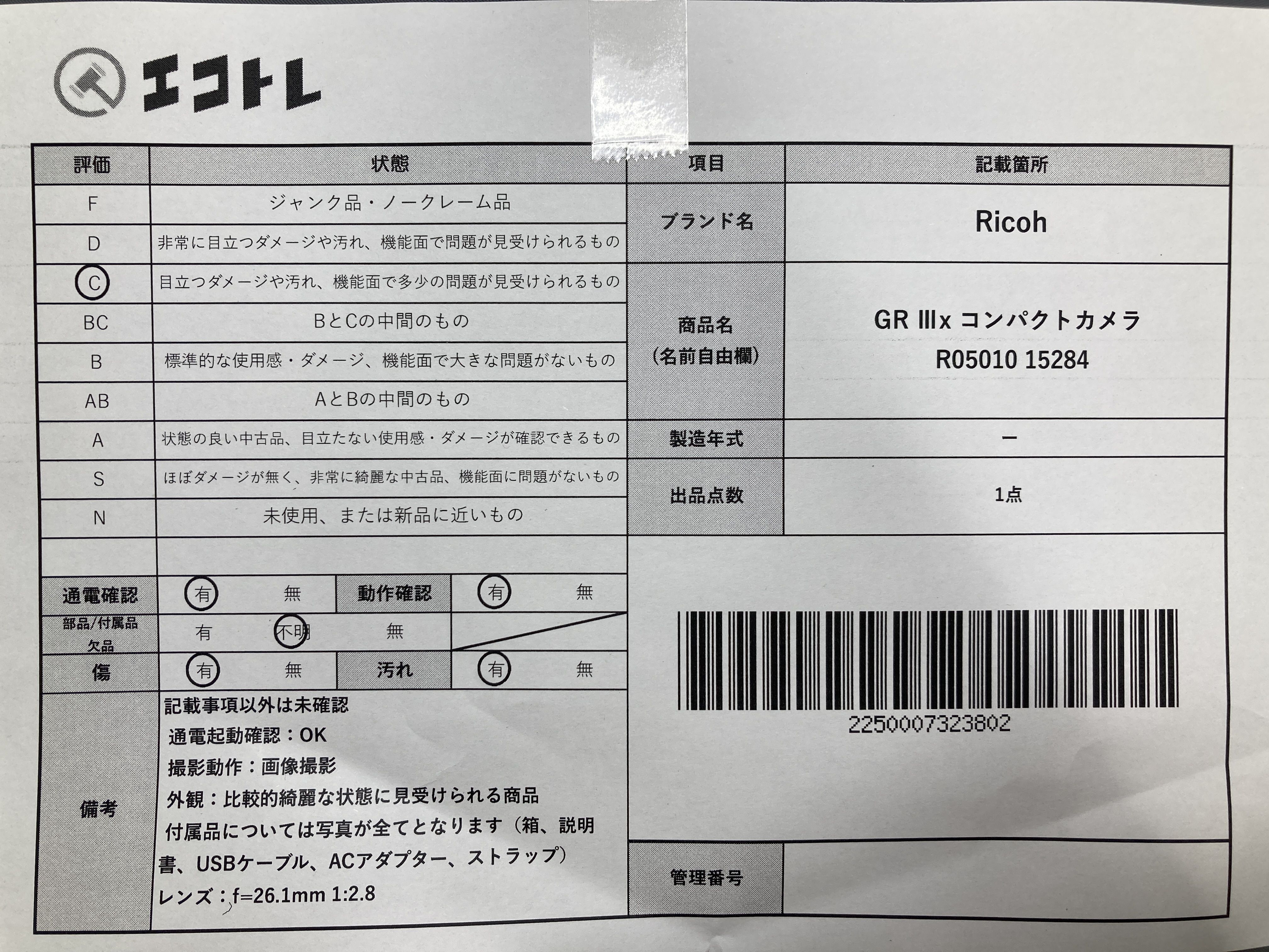 ▼SHIPPING TO JPN ONLY▼ RicohGR Ⅲx コンパクトカメラ R05010 15284","タイプライン":"","カテゴリ":"カメラ","形状コード":"カメラ","付属品コード":"","シリアル・シール・型番":""