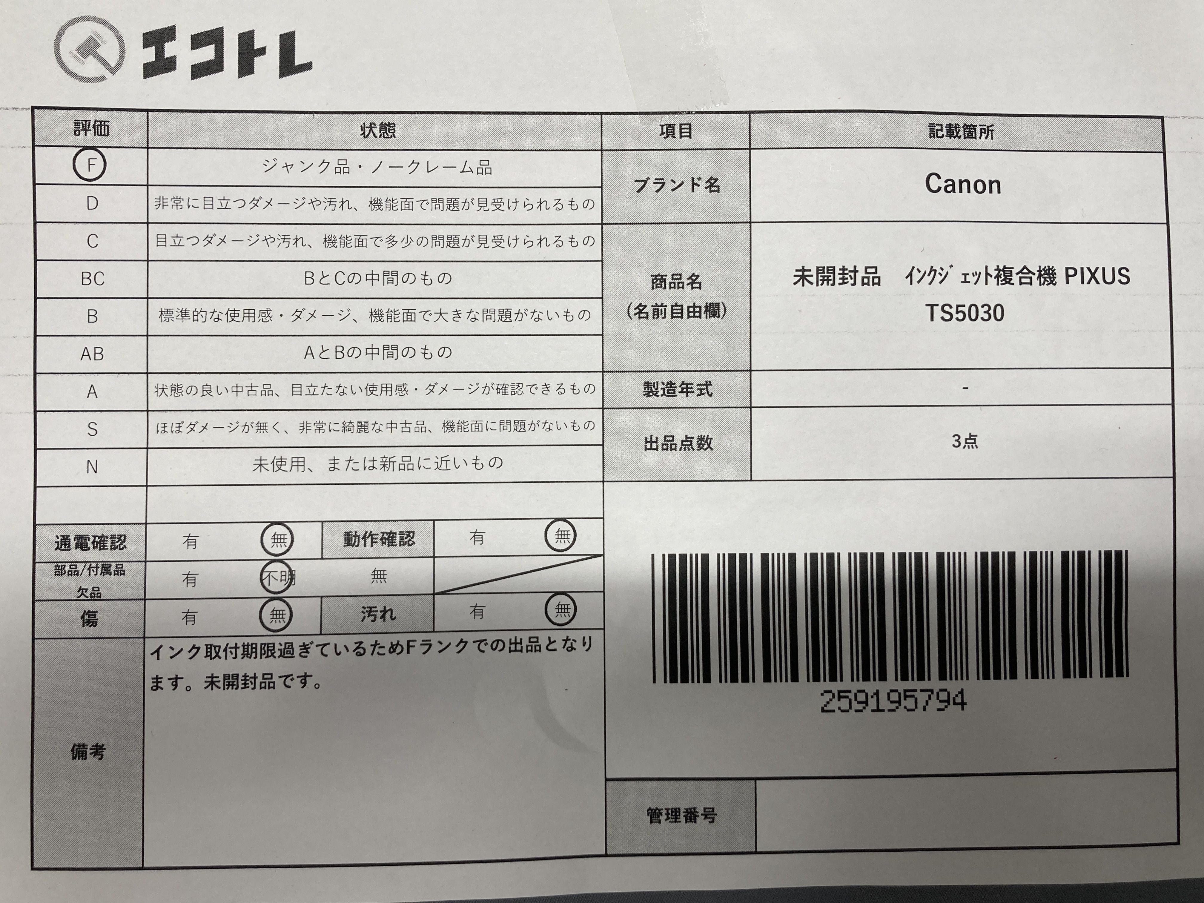 ▼SHIPPING TO JPN ONLY▼ 未開封品 Canon インクシ゛ェット複合機 PIXUS TS5030","タイプライン":"","カテゴリ":"家電","形状コード":"その他家電","付属品コード":"","シリアル・シール・型番":""