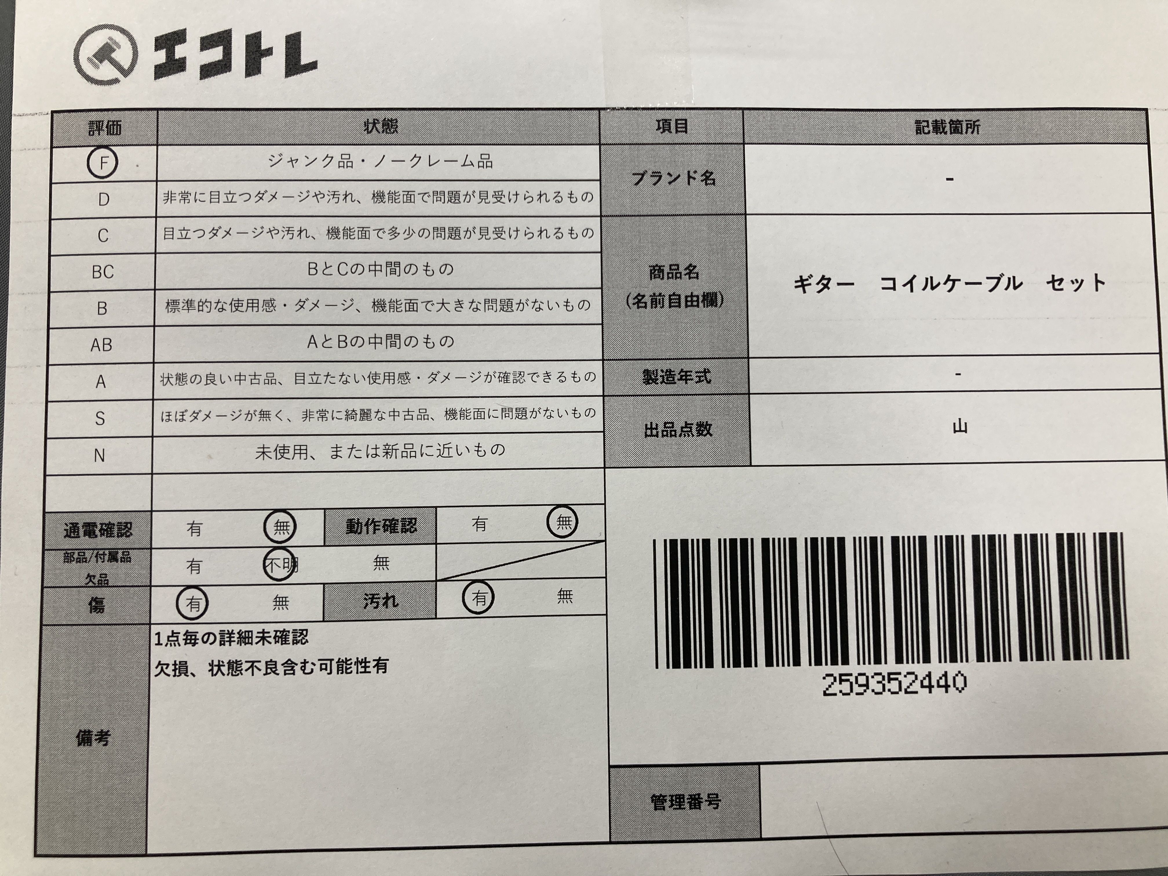 ▼SHIPPING TO JPN ONLY▼ ギター コイルケーブル セット","タイプライン":"","カテゴリ":"家電","形状コード":"その他家電","付属品コード":"","シリアル・シール・型番":""