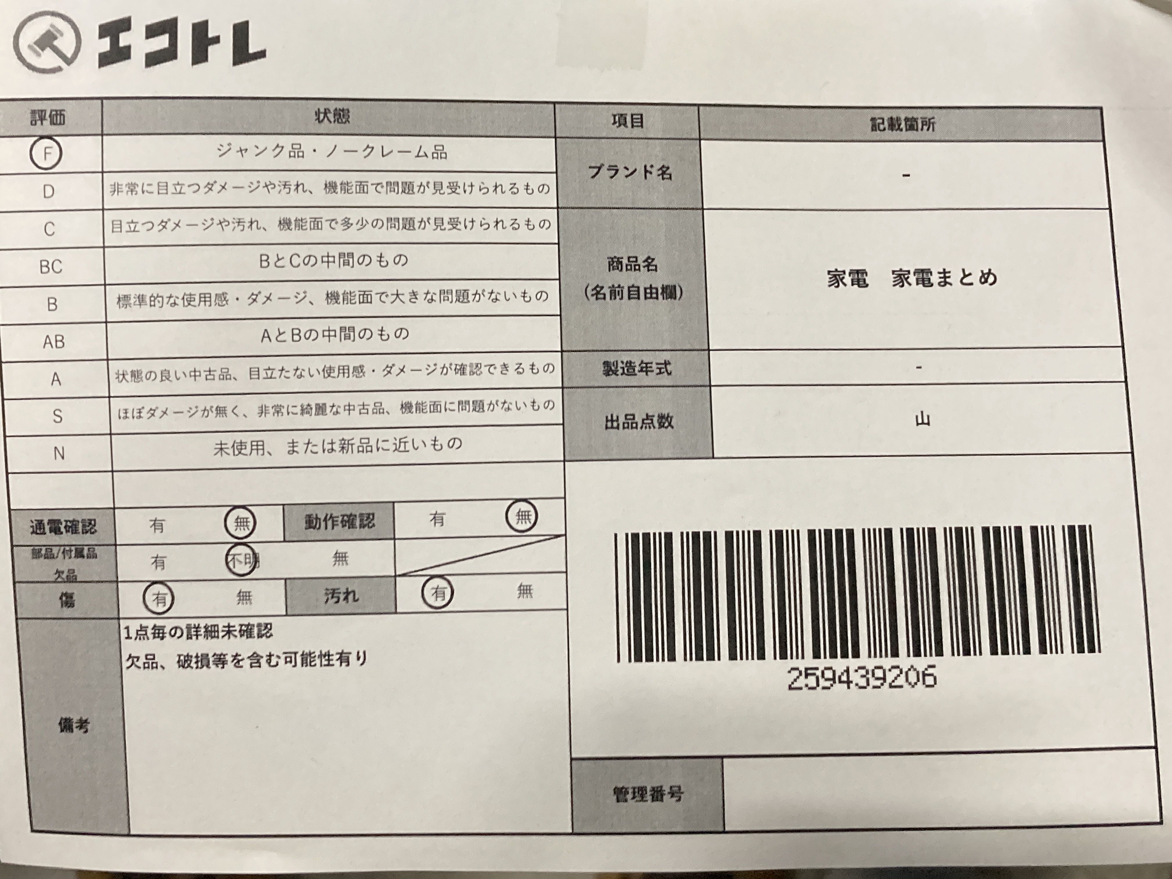▼SHIPPING TO JPN ONLY▼ 家電 家電まとめ","タイプライン":"","カテゴリ":"家電","形状コード":"その他家電","付属品コード":"","シリアル・シール・型番":""