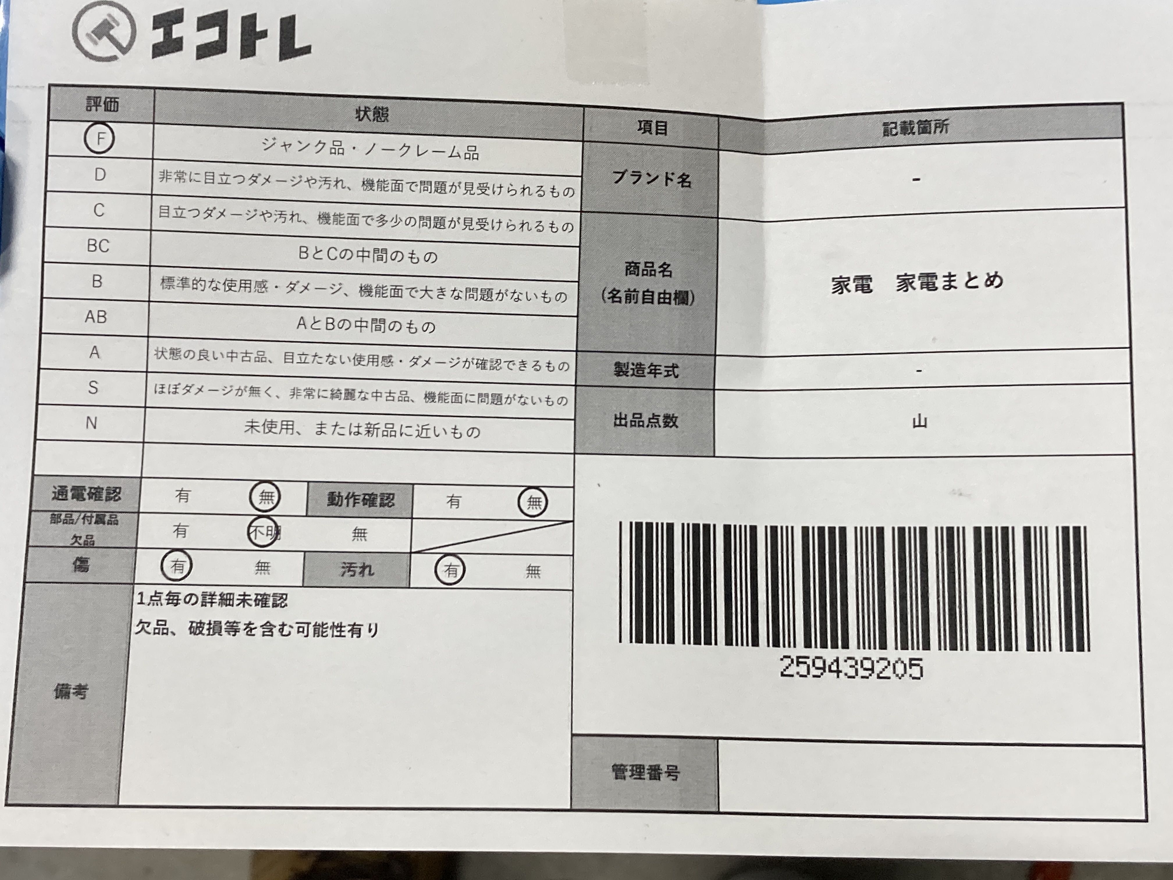 ▼SHIPPING TO JPN ONLY▼ 家電 家電まとめ","タイプライン":"","カテゴリ":"家電","形状コード":"その他家電","付属品コード":"","シリアル・シール・型番":""