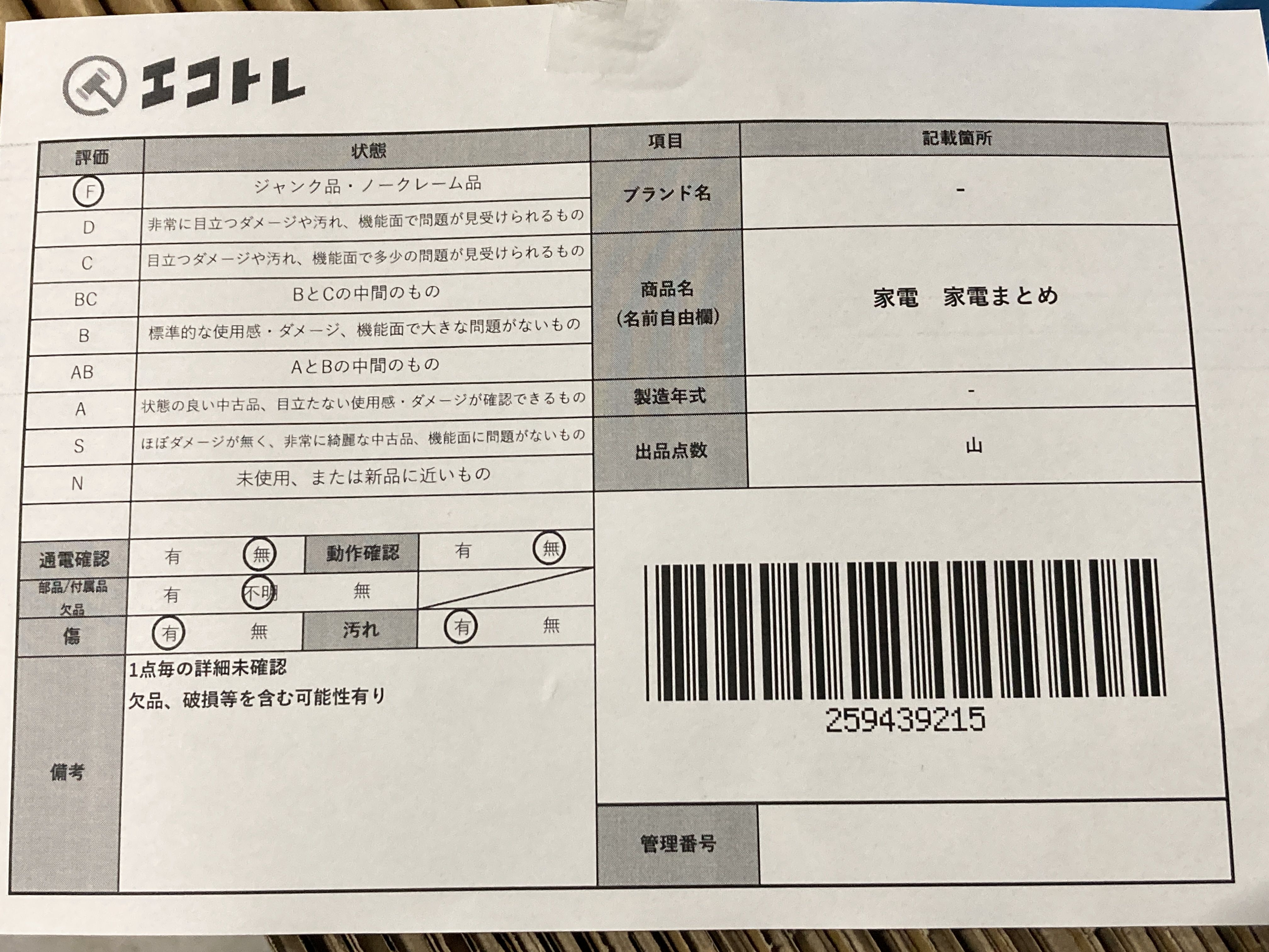 ▼SHIPPING TO JPN ONLY▼ 家電 家電まとめ","タイプライン":"","カテゴリ":"家電","形状コード":"その他家電","付属品コード":"","シリアル・シール・型番":""