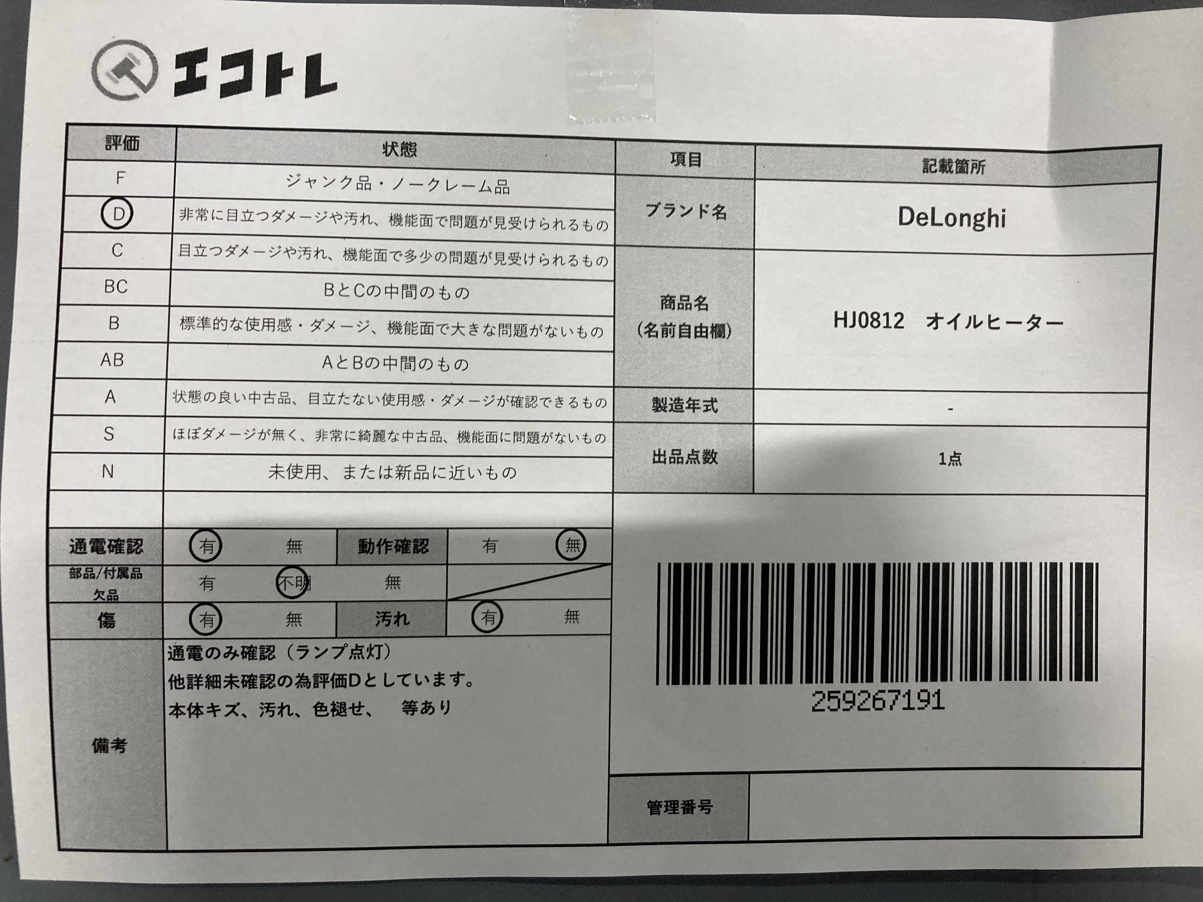 ▼SHIPPING TO JPN ONLY▼ デロンギ DeLonghi HJ0812 オイルヒーター","タイプライン":"","カテゴリ":"家電","形状コード":"サーキュレーター","付属品コード":"","シリアル・シール・型番":""