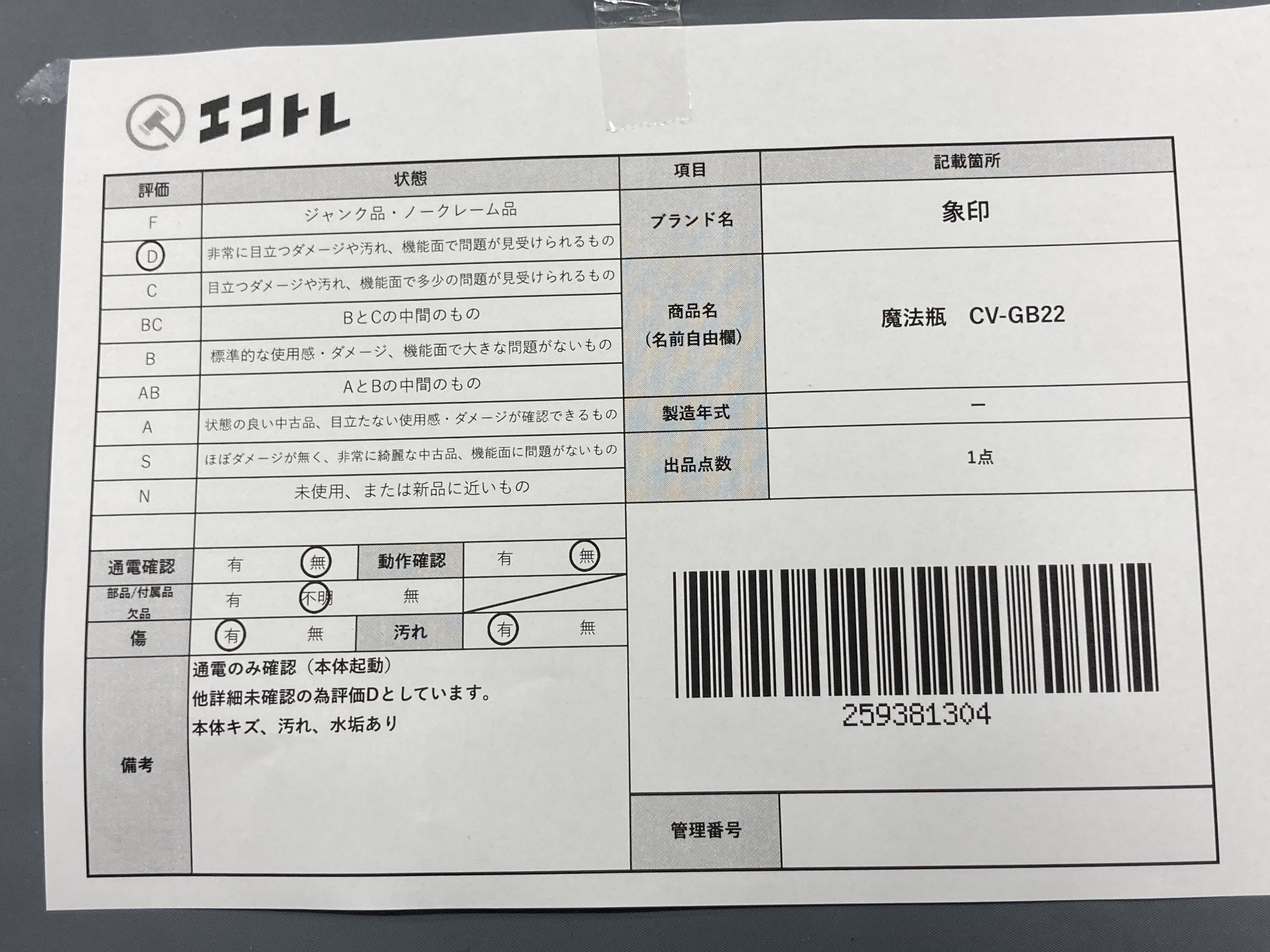 ▼SHIPPING TO JPN ONLY▼ 象印 魔法瓶 CV-GB22","タイプライン":"","カテゴリ":"家電","形状コード":"キッチン","付属品コード":"","シリアル・シール・型番":""