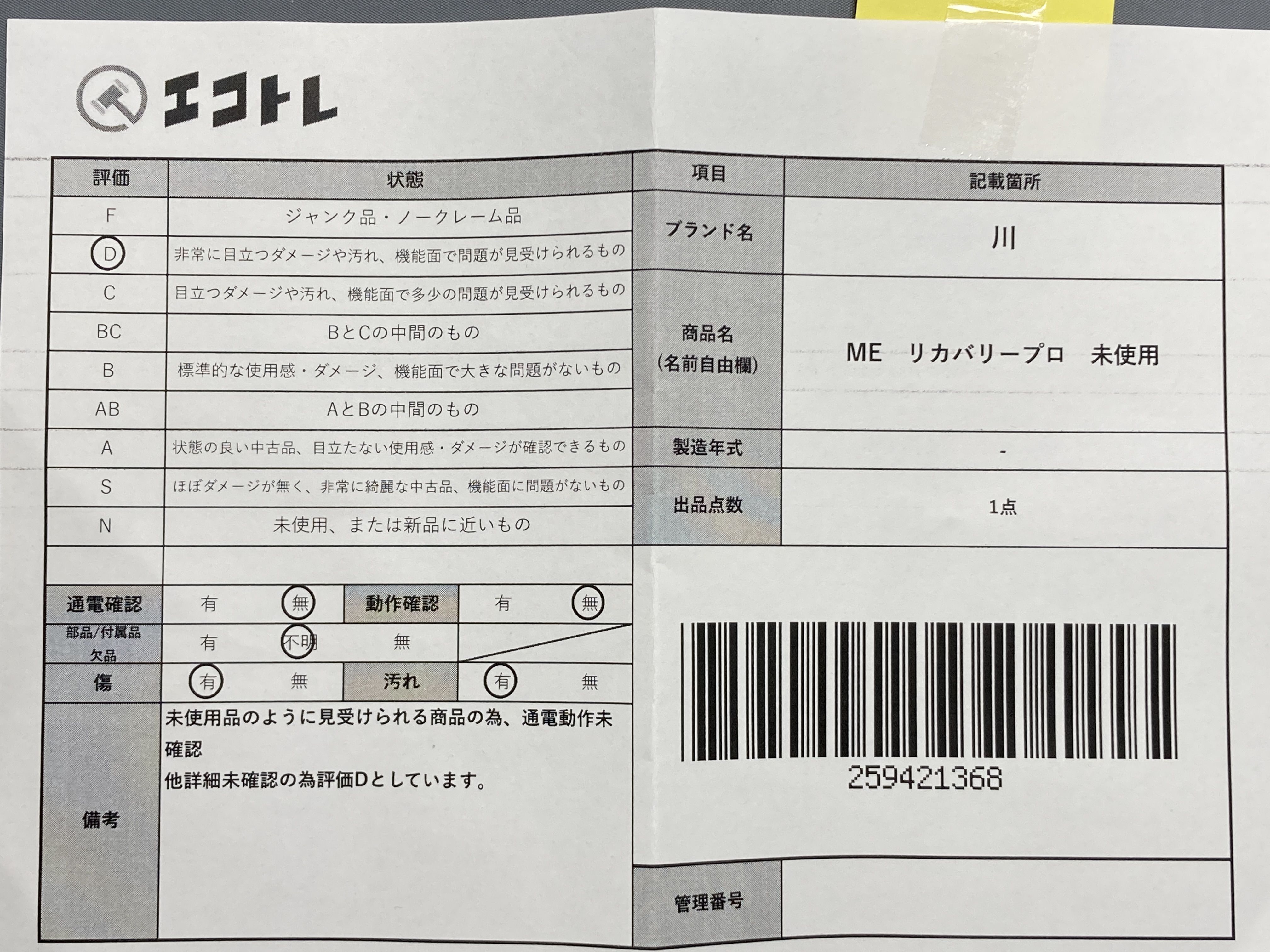 ▼SHIPPING TO JPN ONLY▼ 川ME リカバリープロ 未使用","タイプライン":"","カテゴリ":"家電","形状コード":"美容","付属品コード":"","シリアル・シール・型番":""