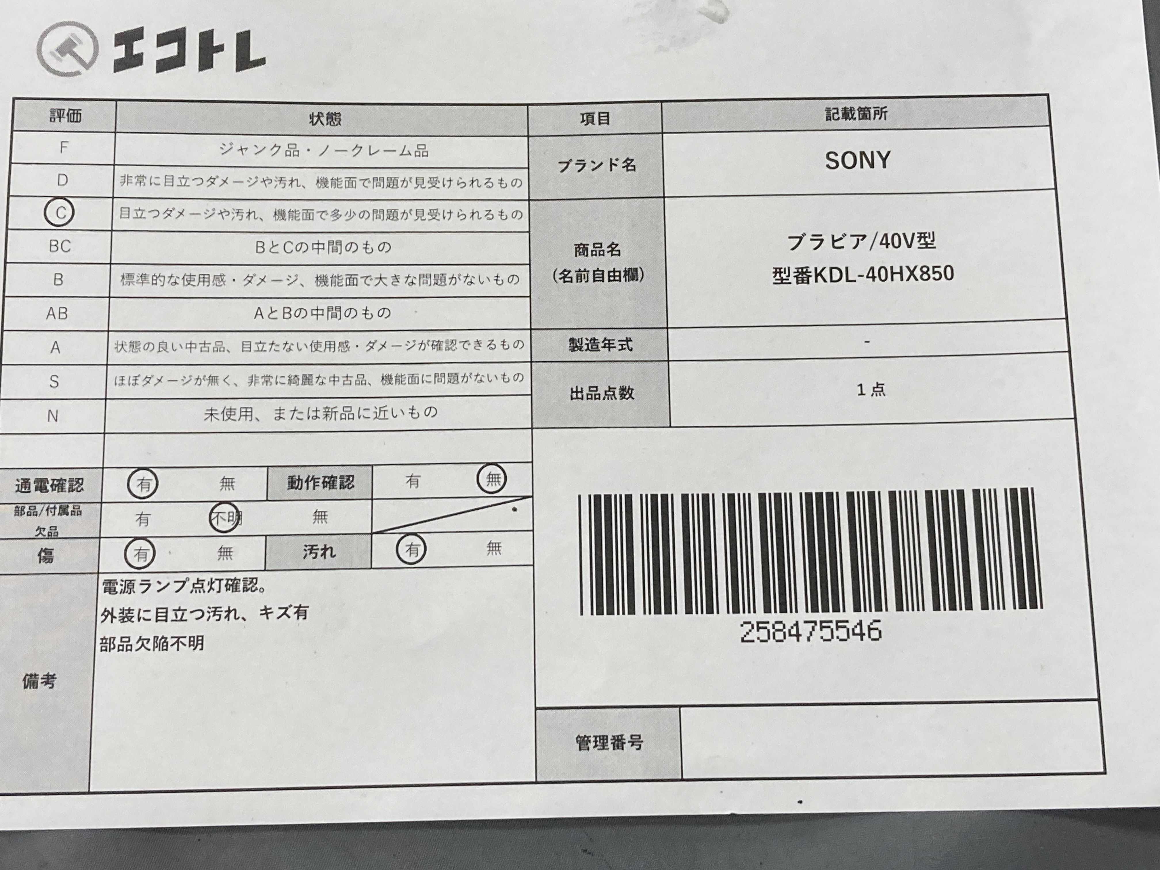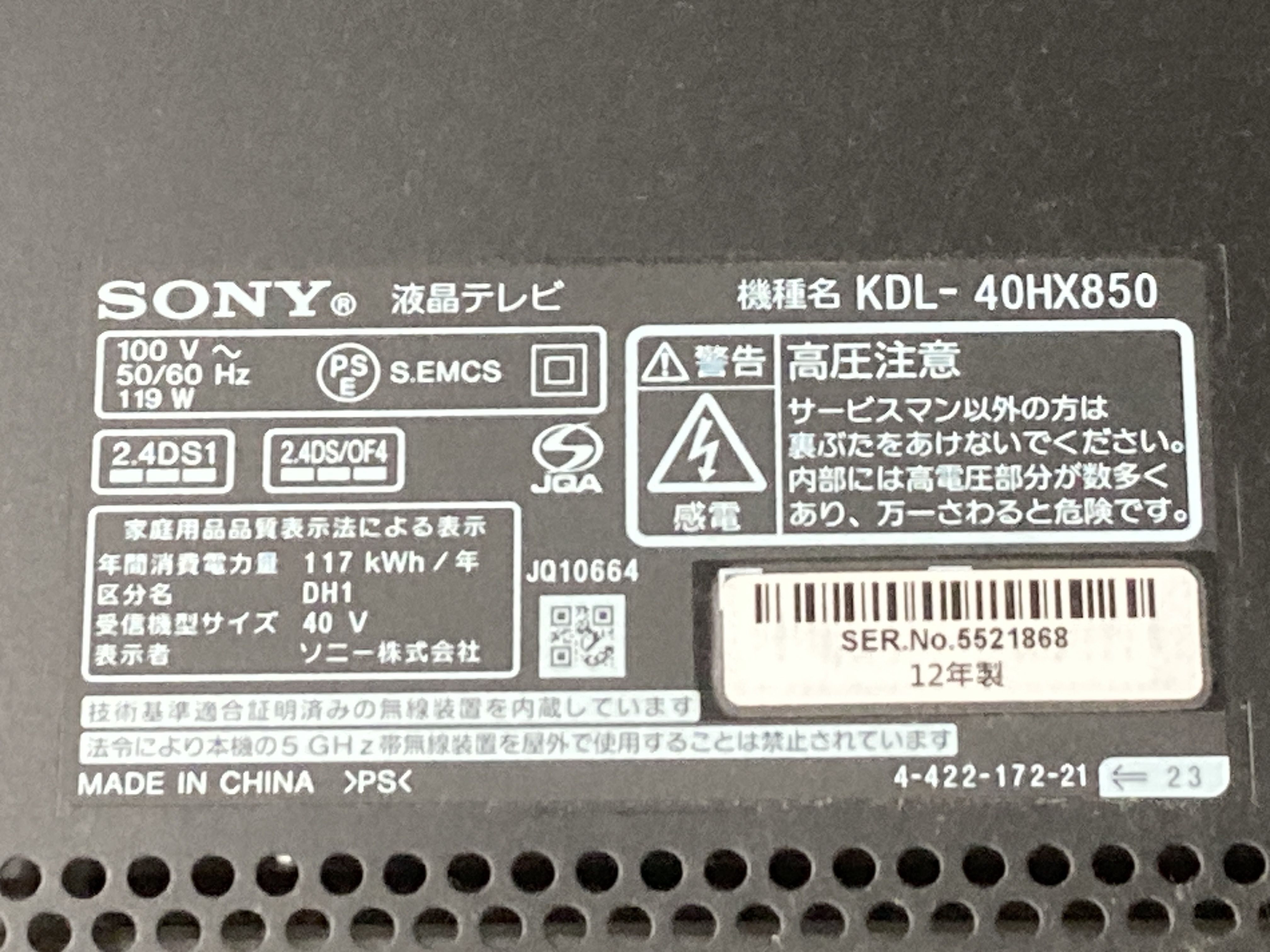▼SHIPPING TO JPN ONLY▼ SONY ブラビア/40V型 型番KDL-40HX850","タイプライン":"","カテゴリ":"家電","形状コード":"テレビ","付属品コード":"","シリアル・シール・型番":""