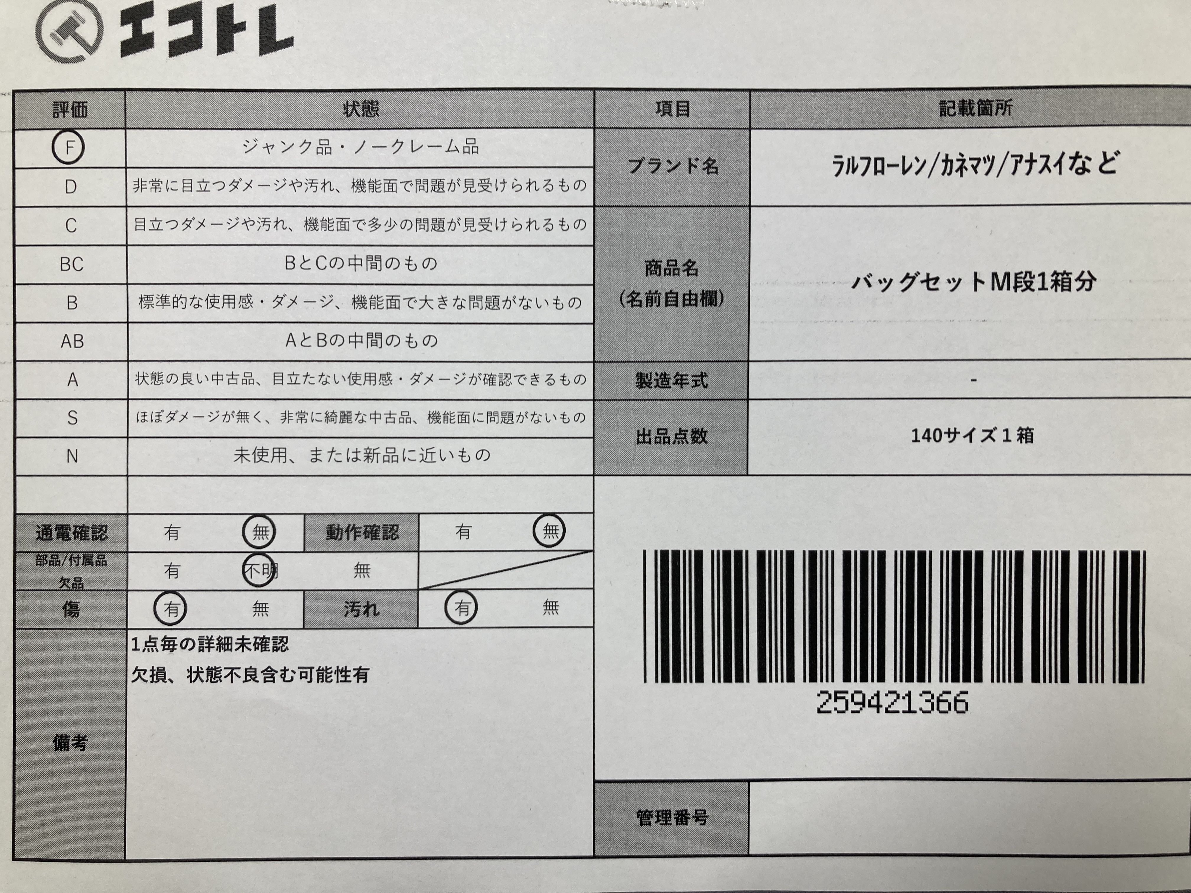 ▼SHIPPING TO JPN ONLY▼ ラルフローレン/カネマツ/アナスイなど バッグセットM段1箱分","タイプライン":"","カテゴリ":"バッグ","形状コード":"バッグ","付属品コード":"","シリアル・シール・型番":""