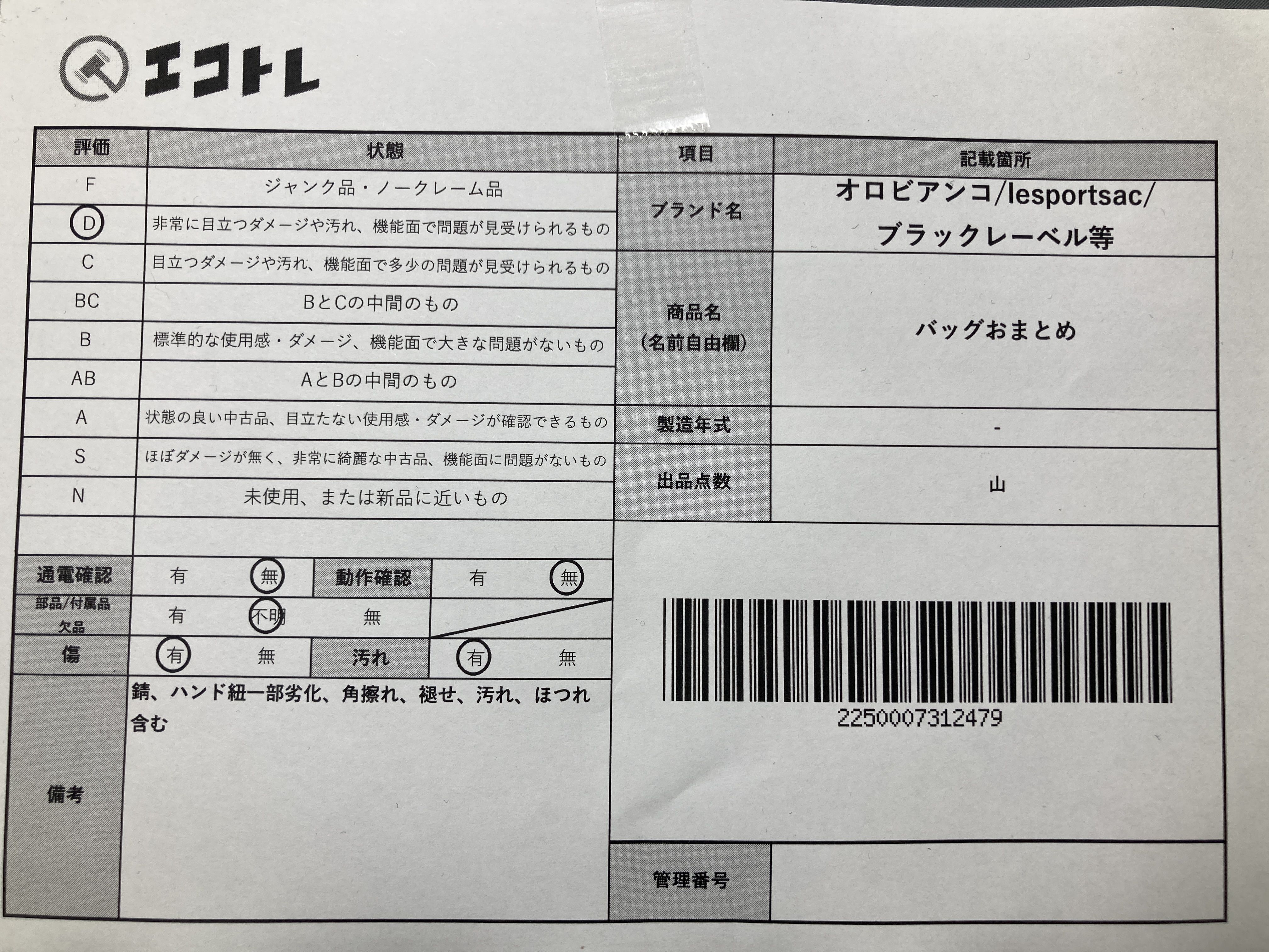▼SHIPPING TO JPN ONLY▼ オロビアンコ/lesportsac/ブラックレーベル等 バッグおまとめ","タイプライン":"","カテゴリ":"バッグ","形状コード":"ハンドバッグ","付属品コード":"","シリアル・シール・型番":""