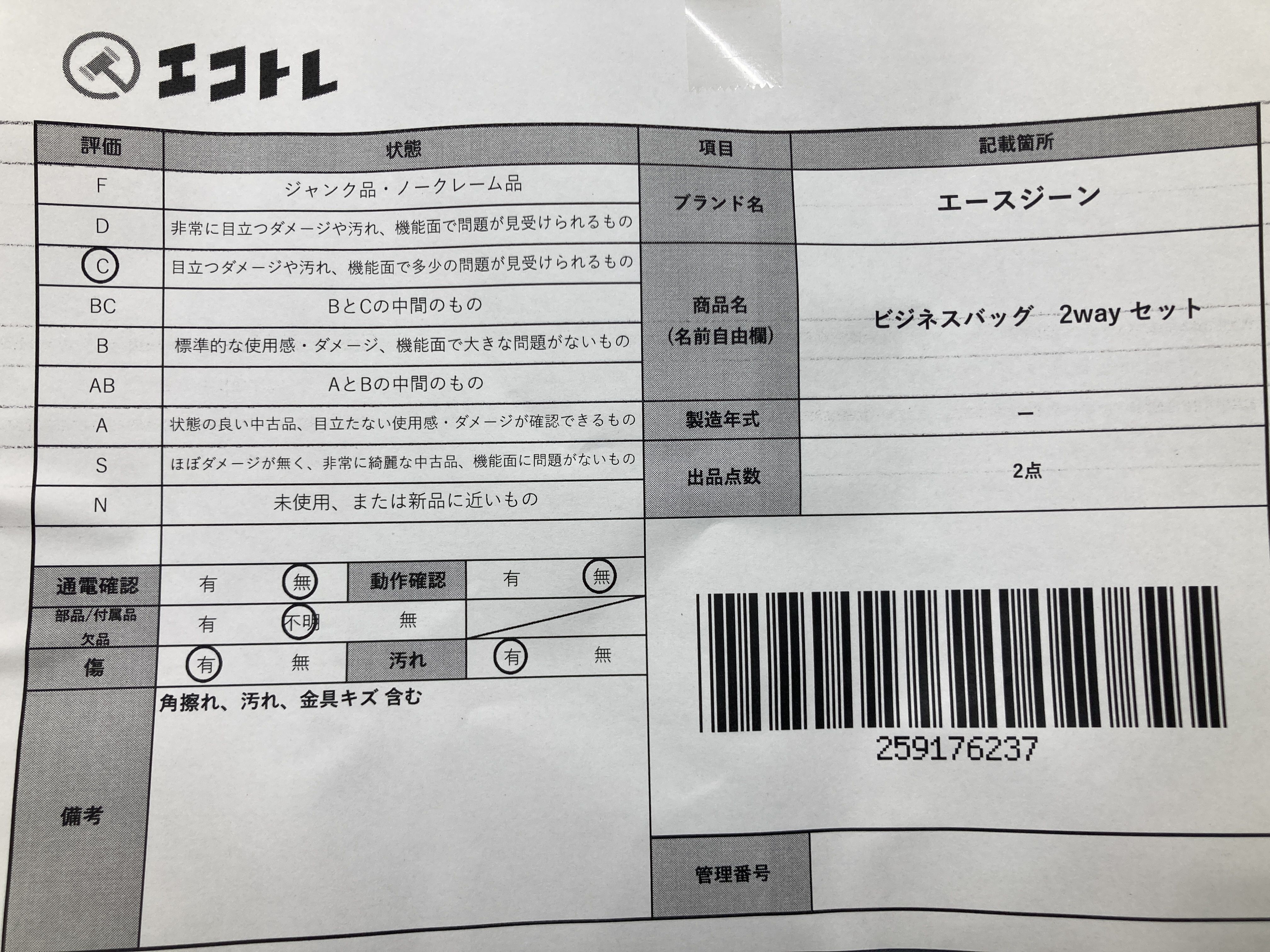 ▼SHIPPING TO JPN ONLY▼ エースジーン ビジネスバッグ 2way セット","タイプライン":"","カテゴリ":"バッグ","形状コード":"ビジネスバッグ","付属品コード":"","シリアル・シール・型番":""