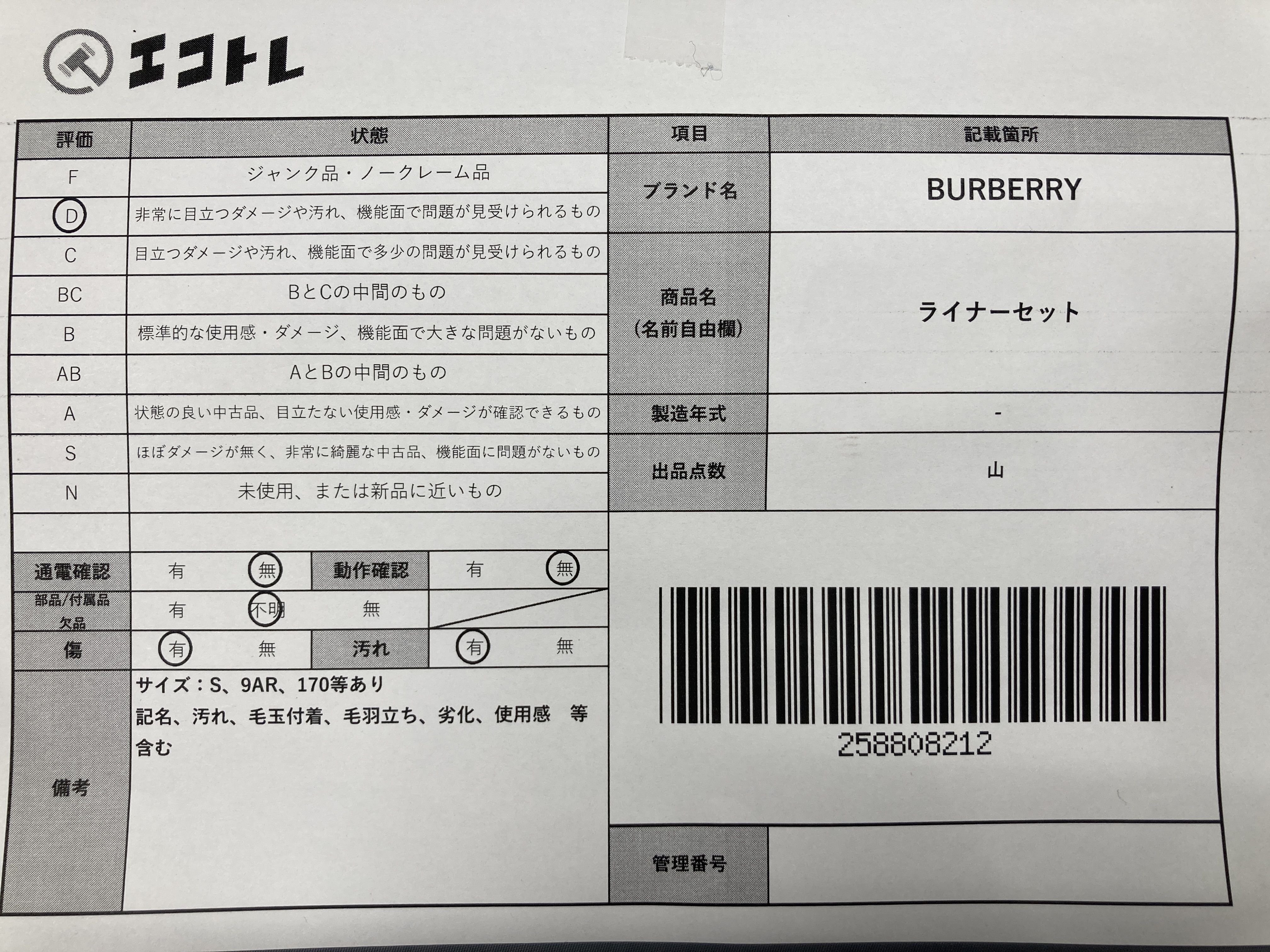 (A_0321)▼BURBERRY ライナーセット その他アパレル