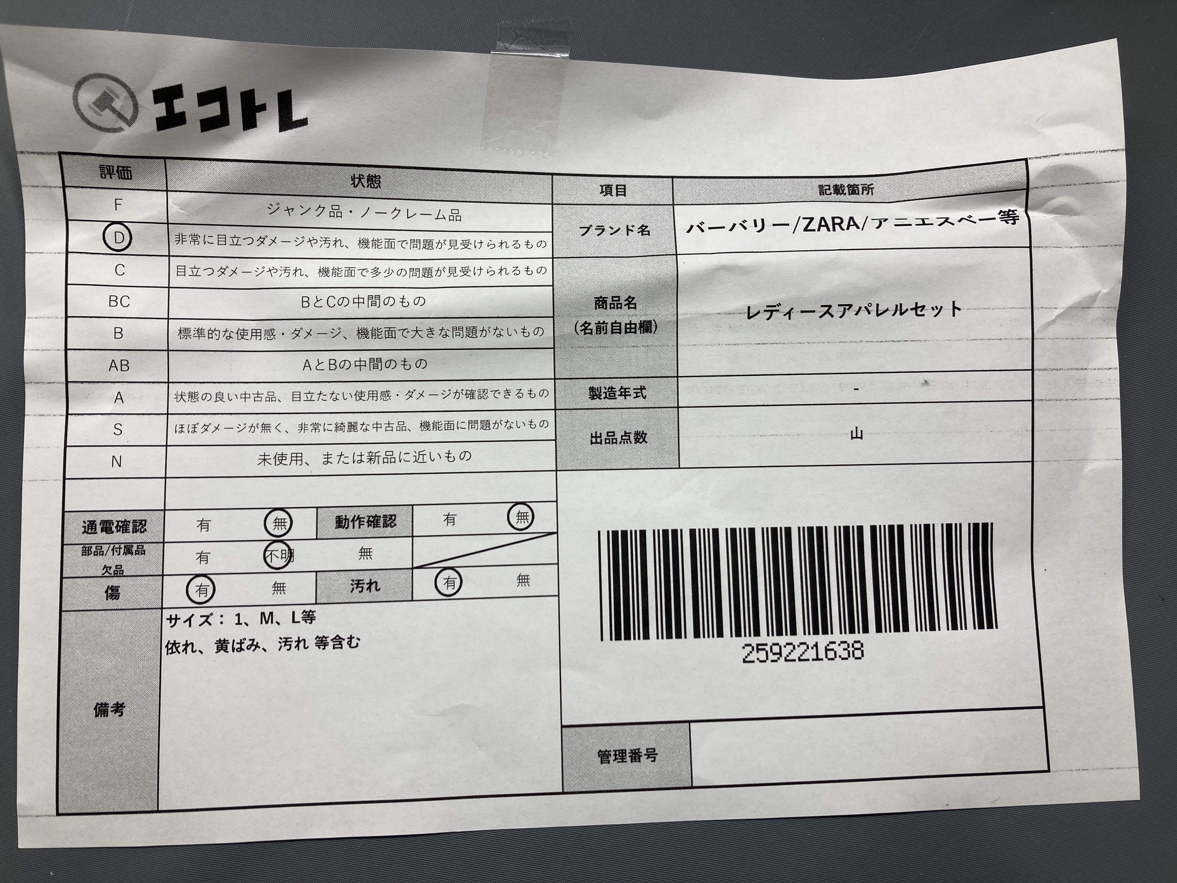 ▼SHIPPING TO JPN ONLY▼ バーバリー/ZARA/アニエスベー等 レディースアパレルセット","タイプライン":"","カテゴリ":"アパレル","形状コード":"ジャケット","付属品コード":"","シリアル・シール・型番":""