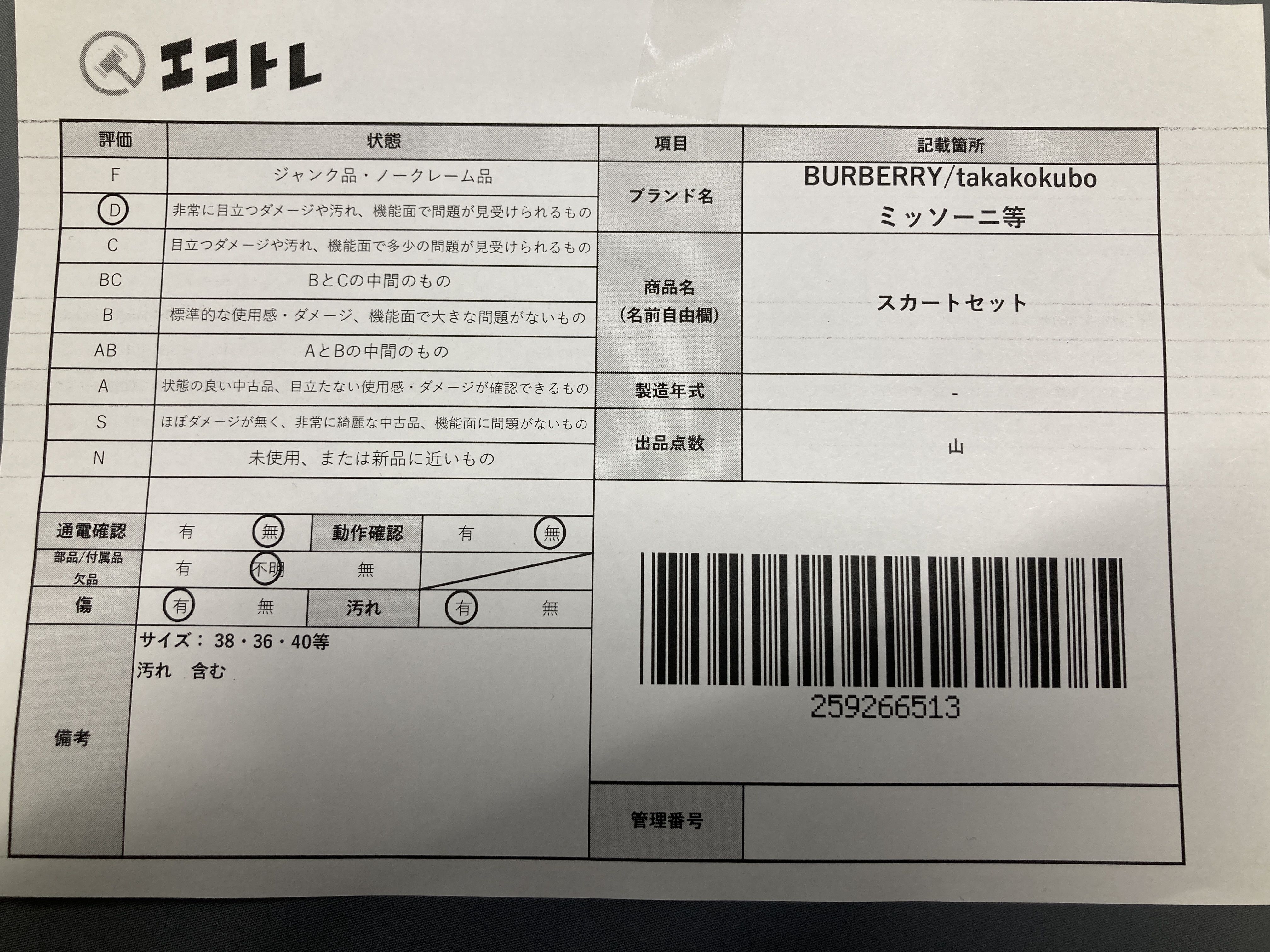 (A_0344)▼BURBERRY /takakokubo/ミッソーニ等 スカートセット