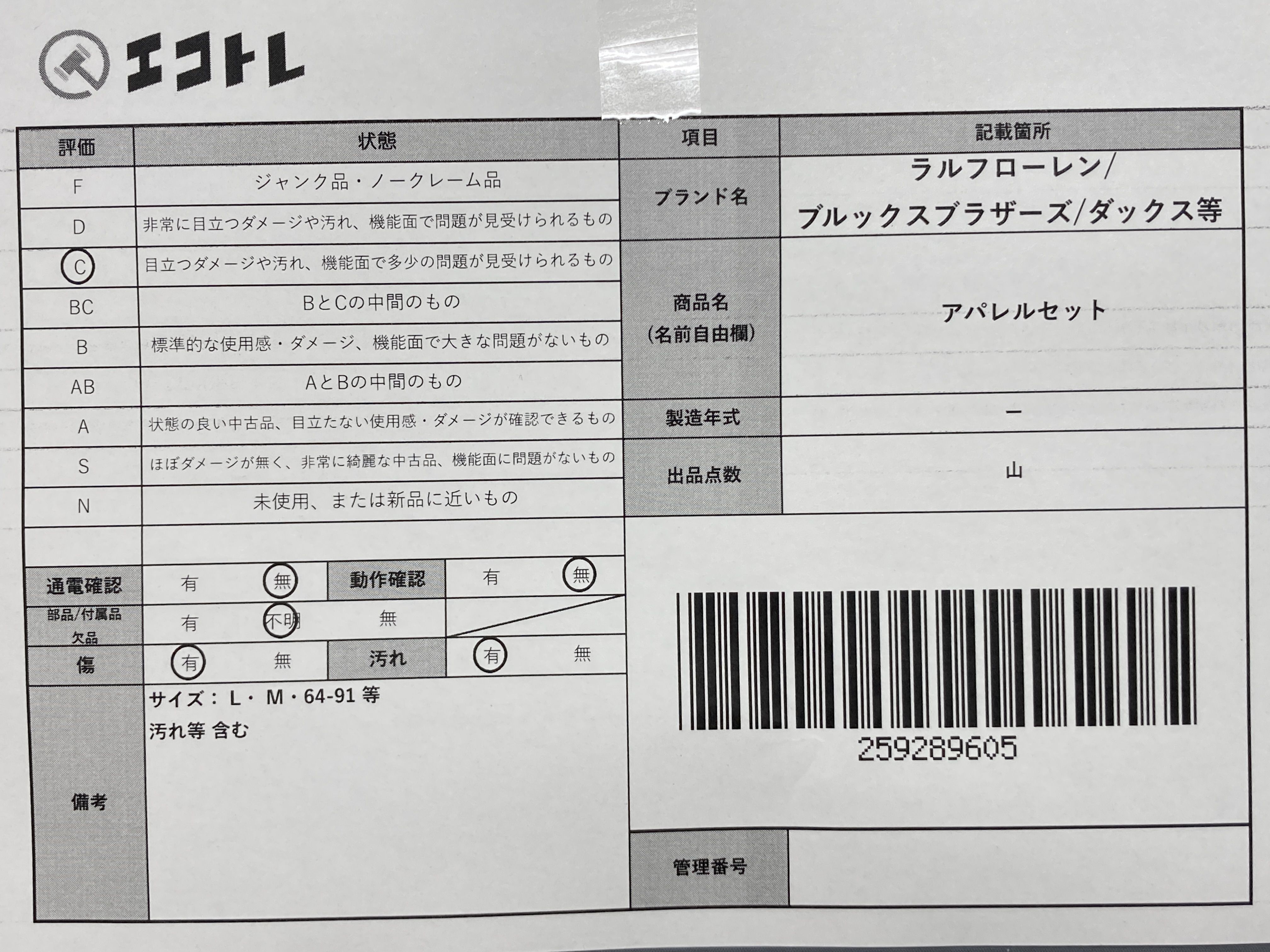 ▼SHIPPING TO JPN ONLY▼ ラルフローレン/ブルックスブラザーズ/ダックス等 アパレルセット","タイプライン":"","カテゴリ":"アパレル","形状コード":"その他アパレル","付属品コード":"","シリアル・シール・型番":""