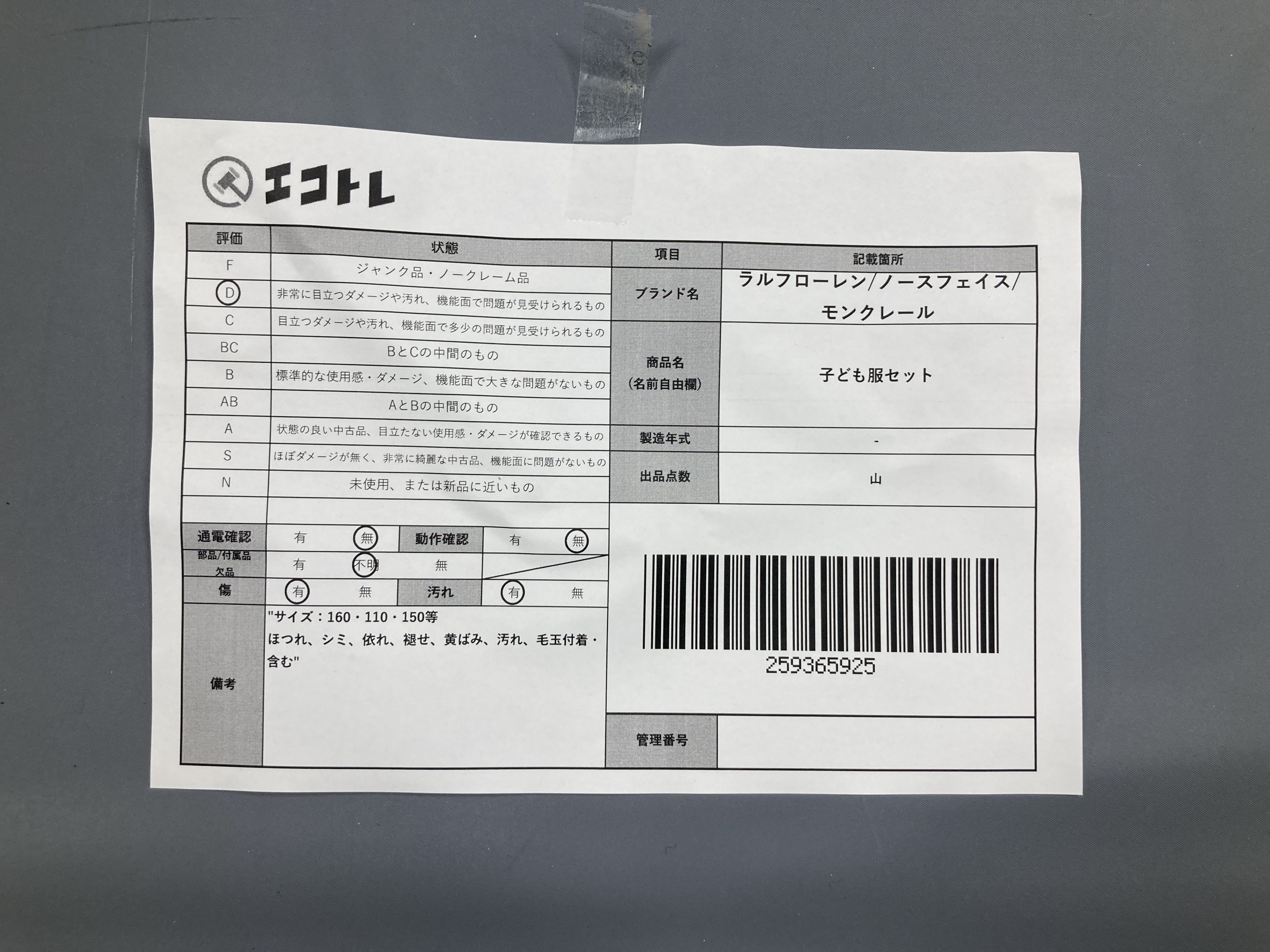 ▼SHIPPING TO JPN ONLY▼ ラルフローレン/ノースフェイス/モンクレール 子ども服セット","タイプライン":"","カテゴリ":"アパレル","形状コード":"その他アパレル","付属品コード":"","シリアル・シール・型番":""