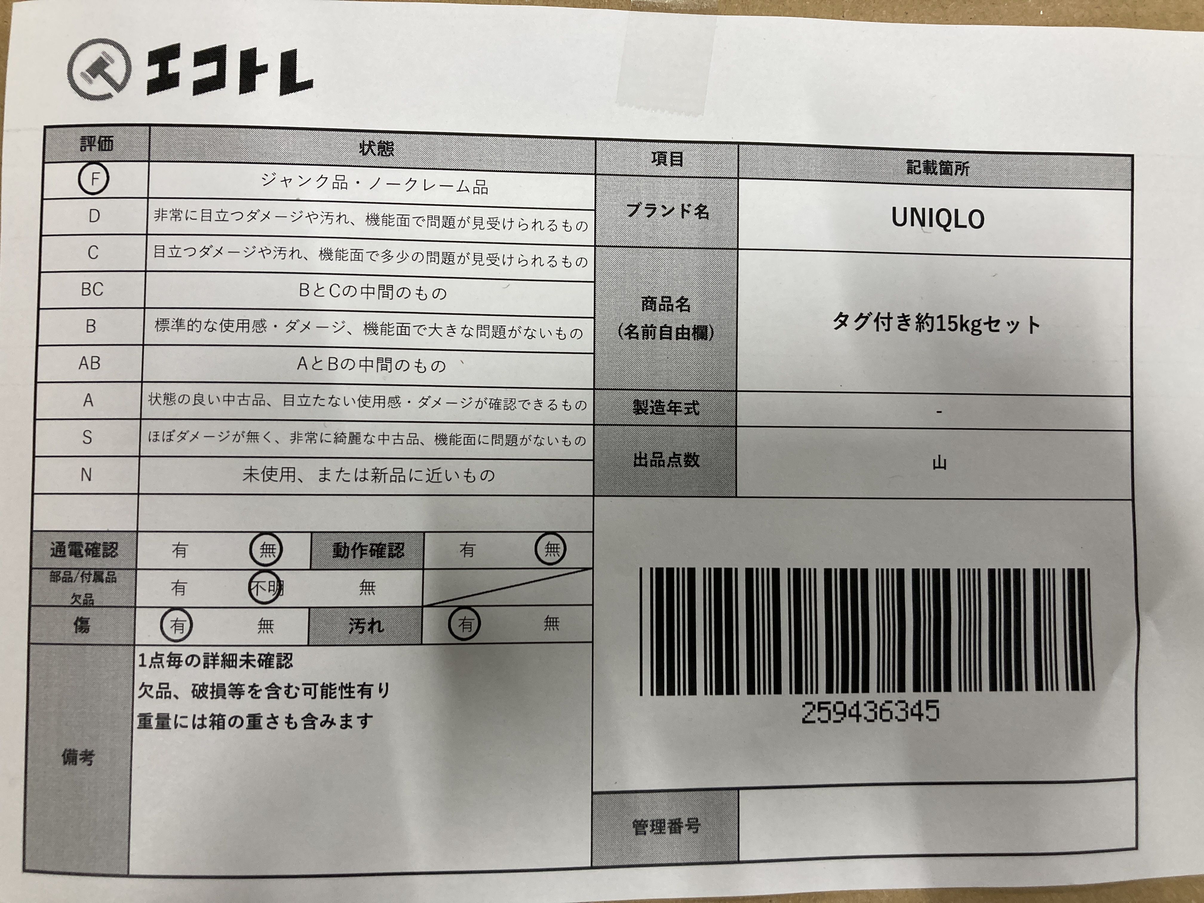 ▼SHIPPING TO JPN ONLY▼ UNIQLOタグ付き約15kgセット","タイプライン":"","カテゴリ":"アパレル","形状コード":"その他アパレル","付属品コード":"","シリアル・シール・型番":""