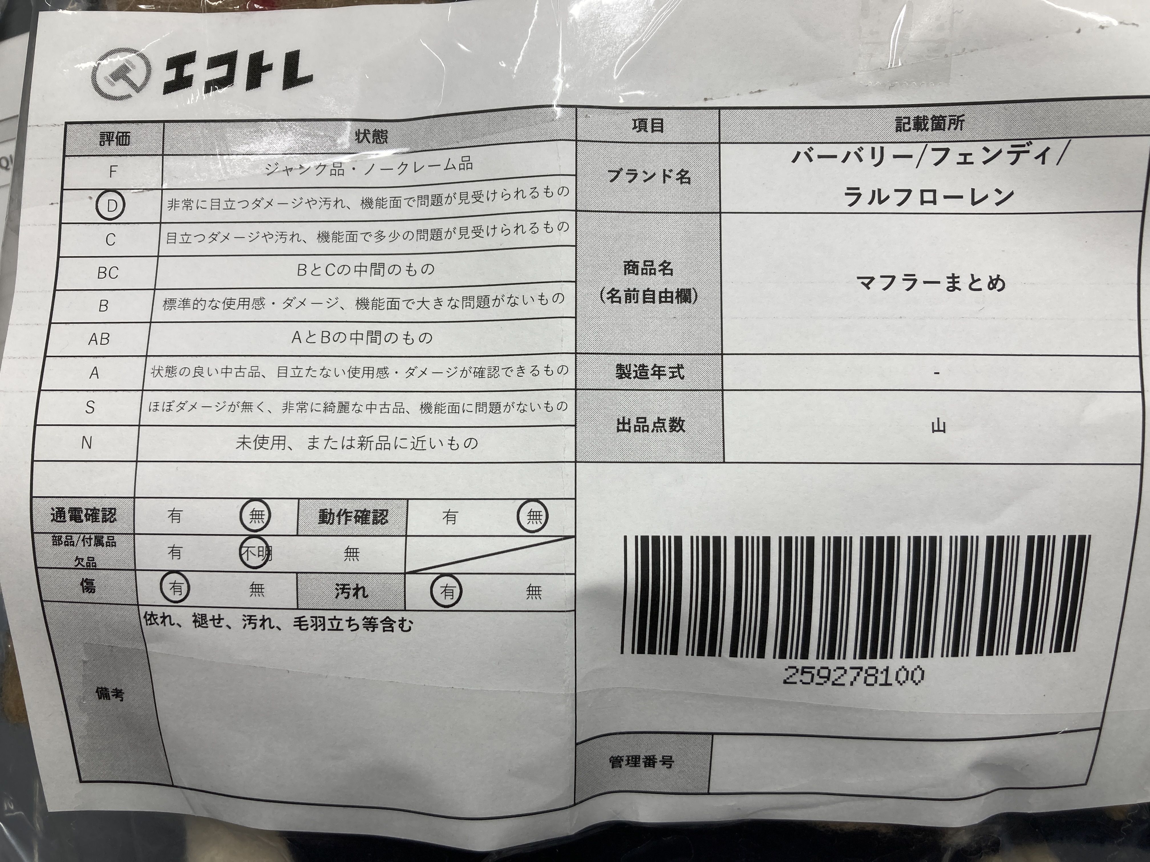 ▼SHIPPING TO JPN ONLY▼ マフラーまとめ バーバリー/フェンディ/ラルフローレン","タイプライン":"","カテゴリ":"アパレル","形状コード":"マフラー","付属品コード":"","シリアル・シール・型番":""