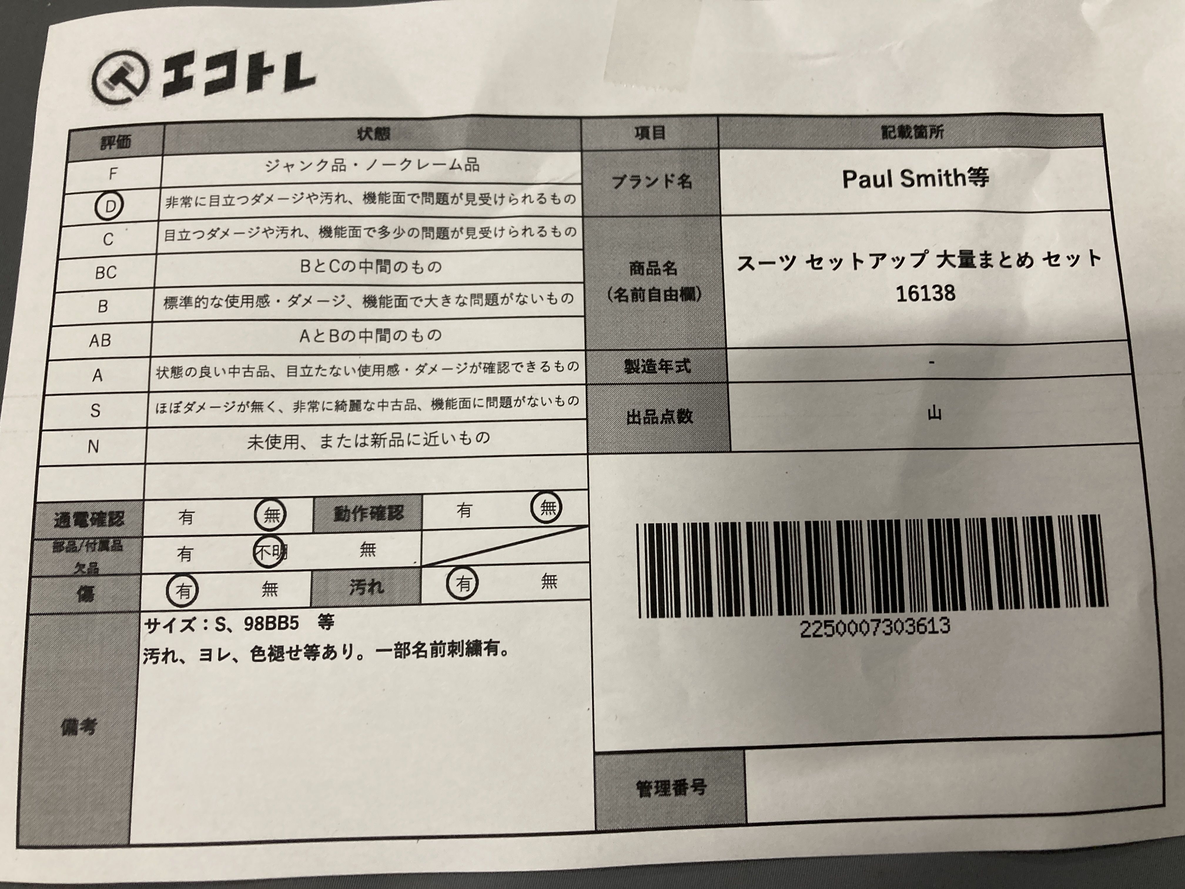 ▼SHIPPING TO JPN ONLY▼ Paul Smith ポールスミス等 スーツ セットアップ 大量まとめ セット 16138","タイプライン":"","カテゴリ":"アパレル","形状コード":"その他アパレル","付属品コード":"","シリアル・シール・型番":""