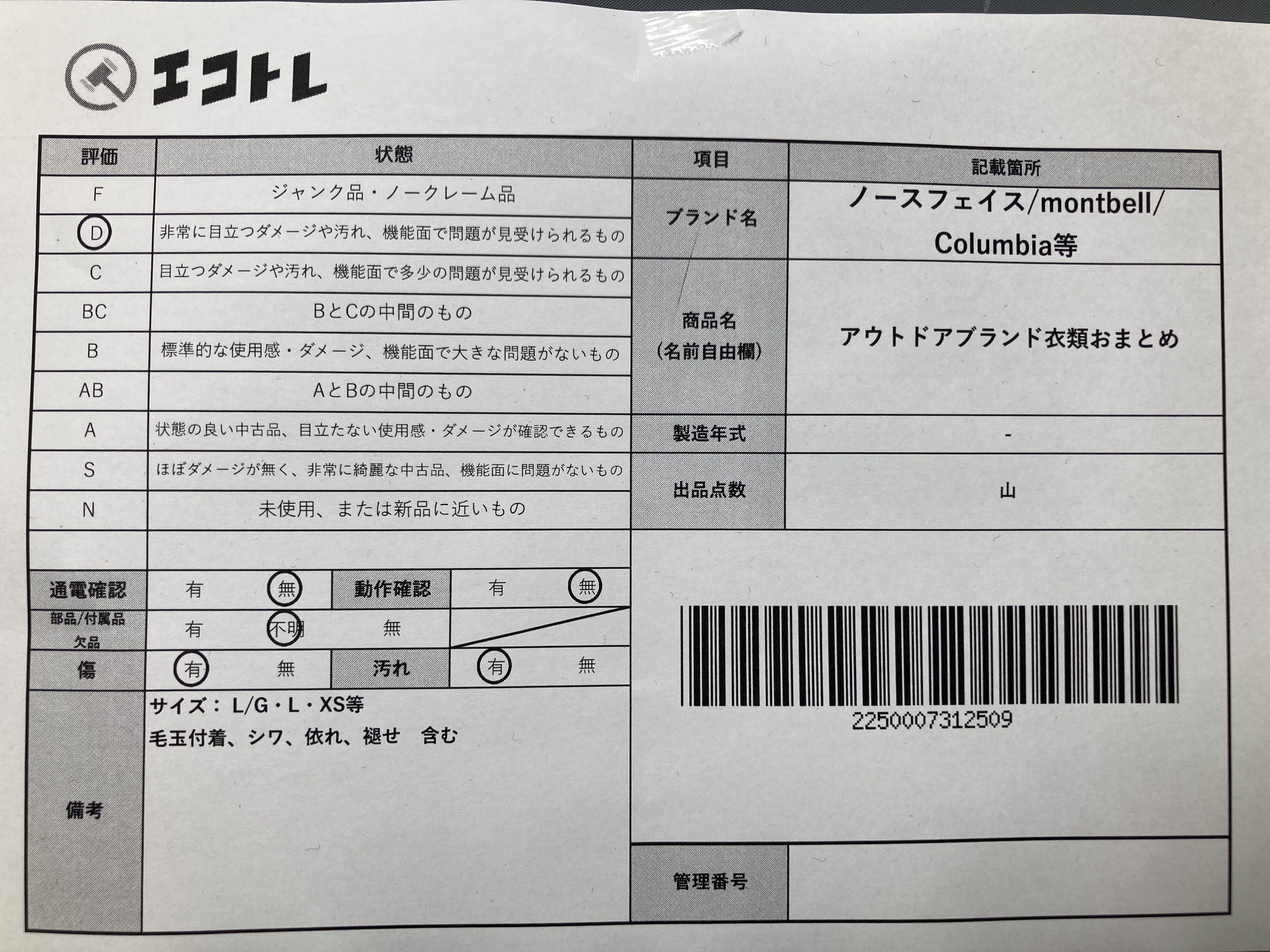 ▼SHIPPING TO JPN ONLY▼ ノースフェイス/montbell/Columbia等 アウトドアブランド衣類おまとめ","タイプライン":"","カテゴリ":"アパレル","形状コード":"その他アパレル","付属品コード":"","シリアル・シール・型番":""