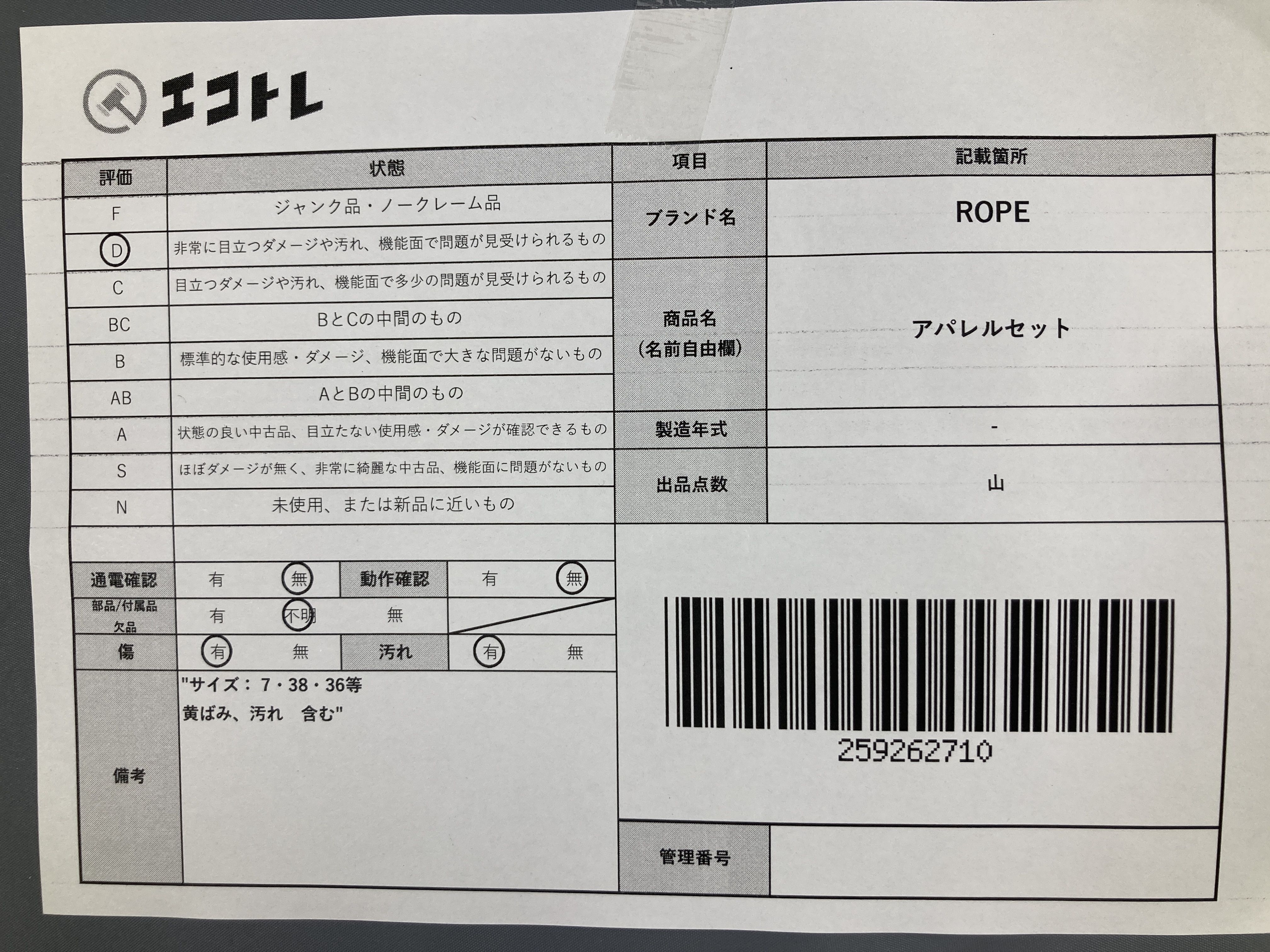 ▼SHIPPING TO JPN ONLY▼ ROPE アパレルセット","タイプライン":"","カテゴリ":"アパレル","形状コード":"その他アパレル","付属品コード":"","シリアル・シール・型番":""