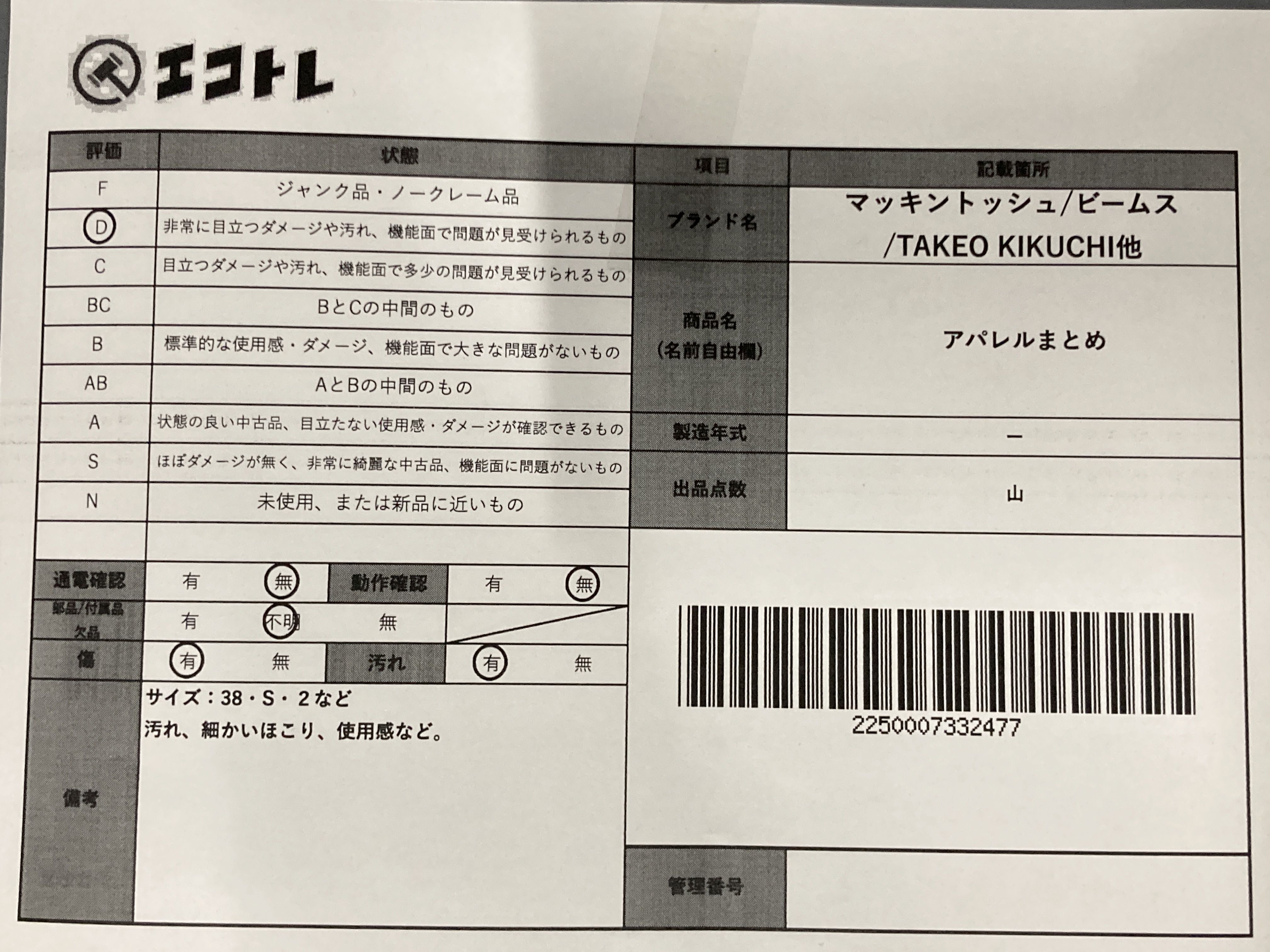 ▼SHIPPING TO JPN ONLY▼ マッキントッシュ シップス ビームスなど コート アウター まとめ セット 5点","タイプライン":"","カテゴリ":"アパレル","形状コード":"コート","付属品コード":"","シリアル・シール・型番":""