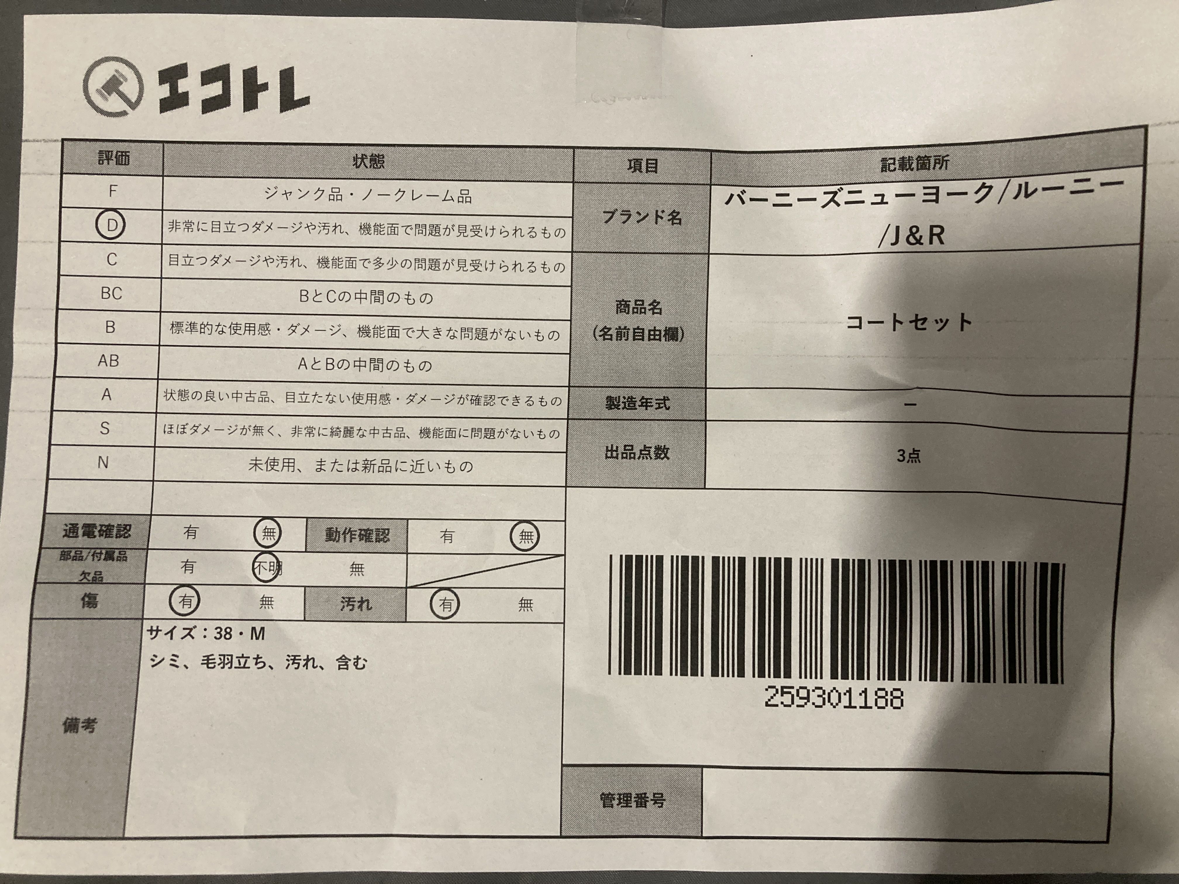 (A_0595)▼バーニーズニューヨーク/ルーニー/J&R コートセット
