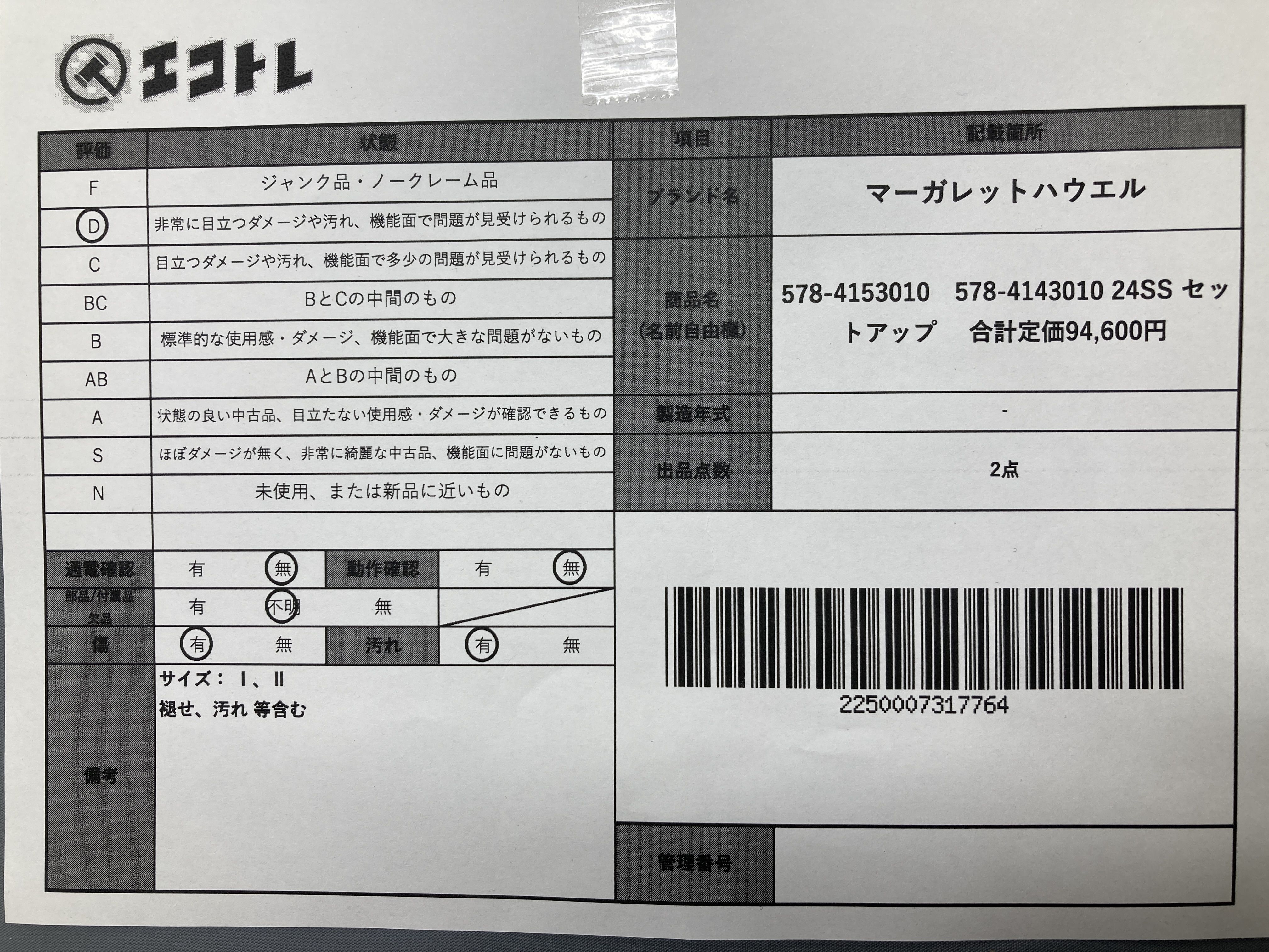 ▼SHIPPING TO JPN ONLY▼ マーガレットハウエル 578-4153010 578-4143010 24SS セットアップ 合計定価94600円","タイプライン":"","カテゴリ":"アパレル","形状コード":"ジャケット","付属品コード":"","シリアル・シール・型番":""