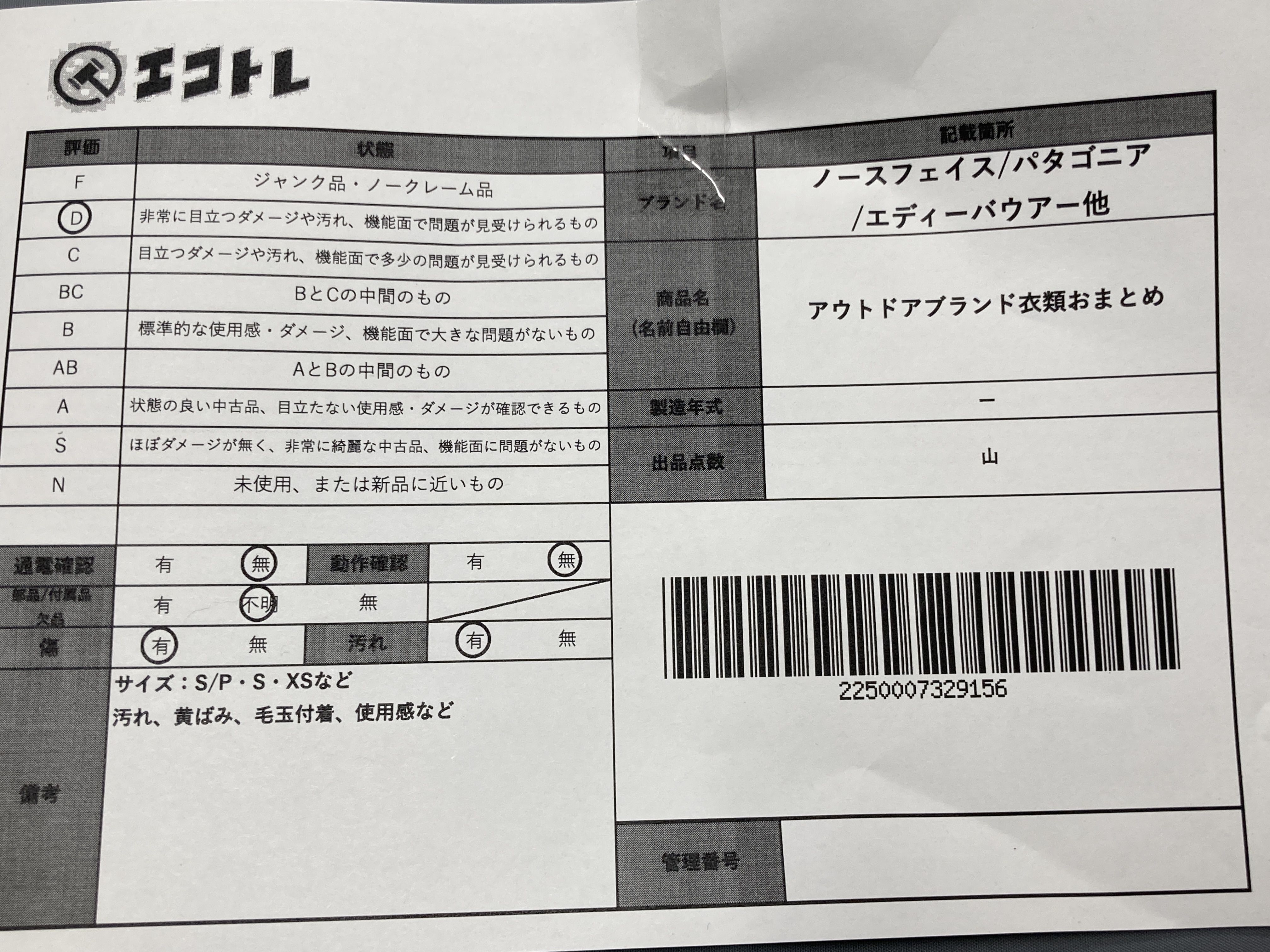 ▼SHIPPING TO JPN ONLY▼ ノースフェイス パタゴニア等 アウトドアブランド衣類おまとめ","タイプライン":"","カテゴリ":"アパレル","形状コード":"ジャケット","付属品コード":"","シリアル・シール・型番":""