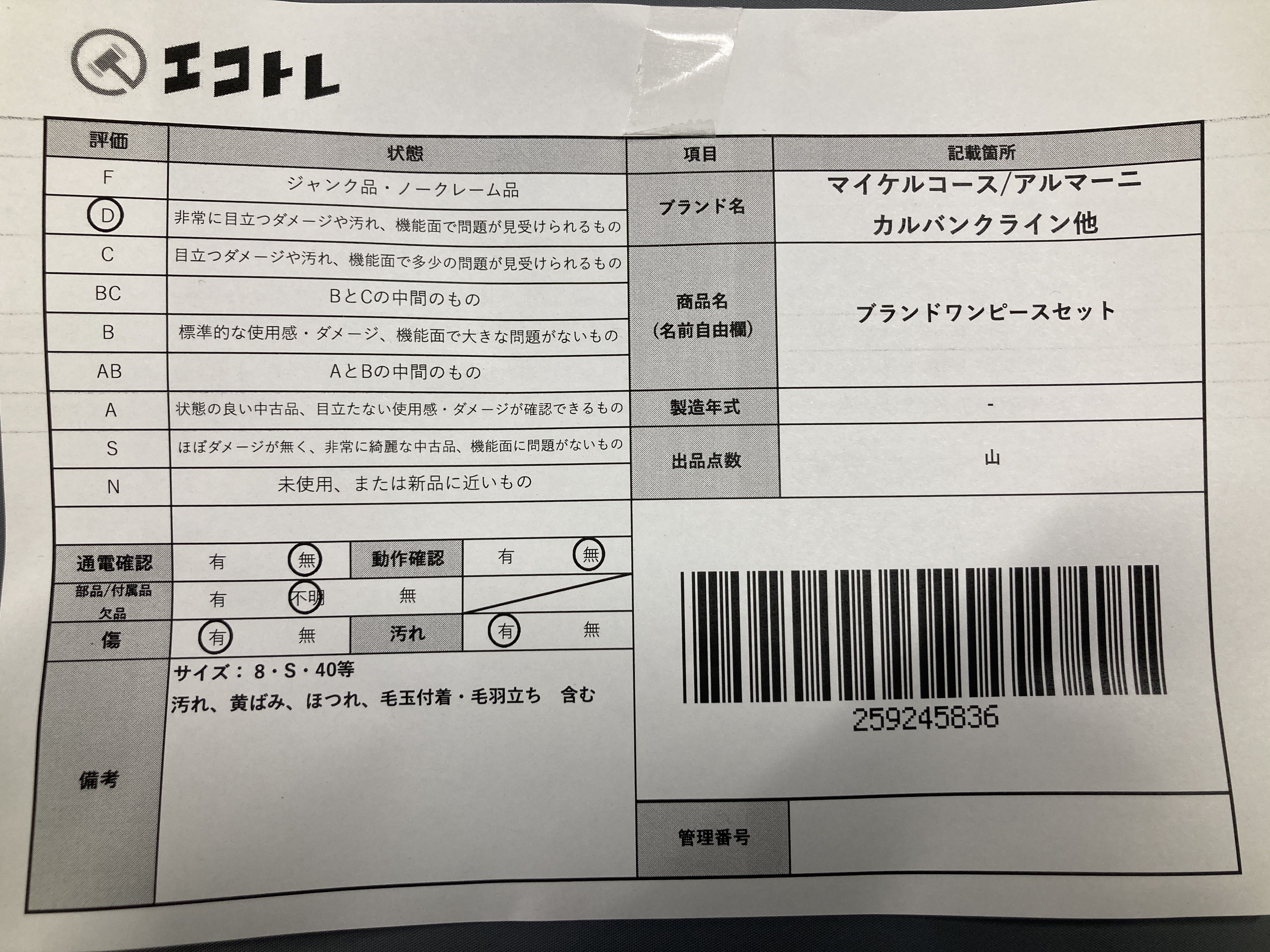 ▼SHIPPING TO JPN ONLY▼ マイケルコース/アルマーニ/カルバンクライン他ブランドワンピースセット","タイプライン":"","カテゴリ":"アパレル","形状コード":"ワンピース","付属品コード":"","シリアル・シール・型番":""