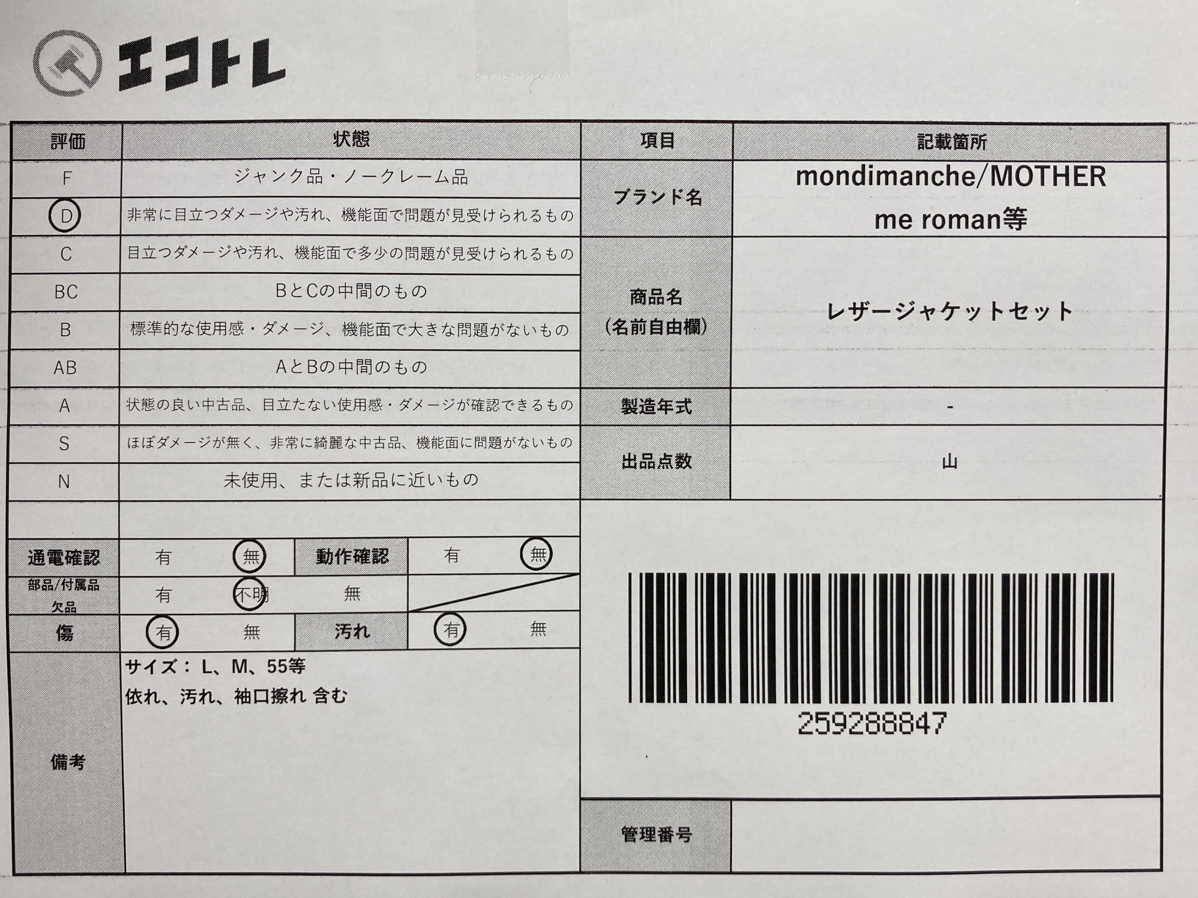 ▼SHIPPING TO JPN ONLY▼ mondimanche/MOTHER/me roman等 レザージャケットセット","タイプライン":"","カテゴリ":"アパレル","形状コード":"ジャケット","付属品コード":"","シリアル・シール・型番":""