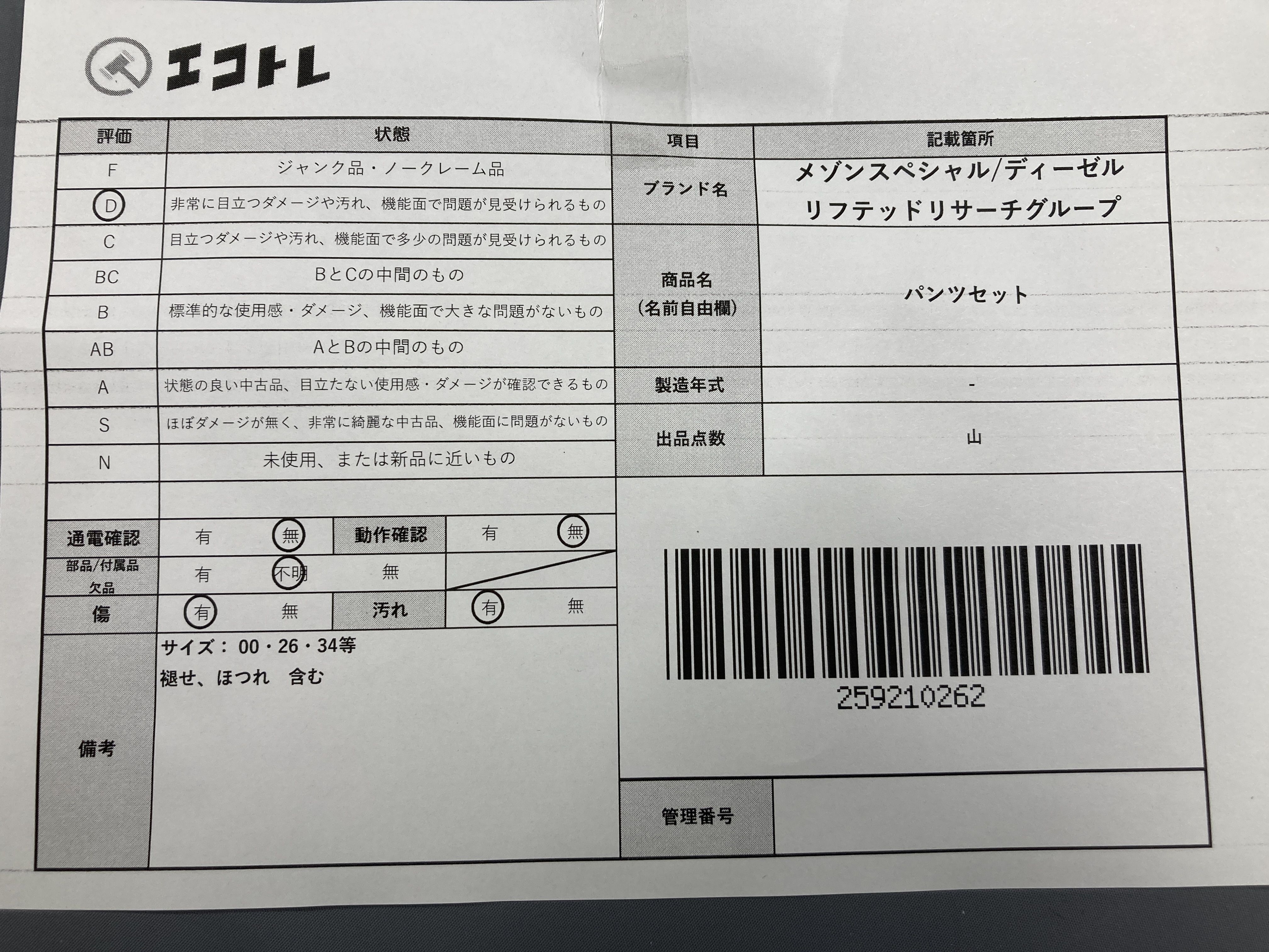 ▼SHIPPING TO JPN ONLY▼ メゾンスペシャル/ディーゼル/リフテッドリサーチグループ他 パンツセット","タイプライン":"","カテゴリ":"アパレル","形状コード":"パンツ","付属品コード":"","シリアル・シール・型番":""