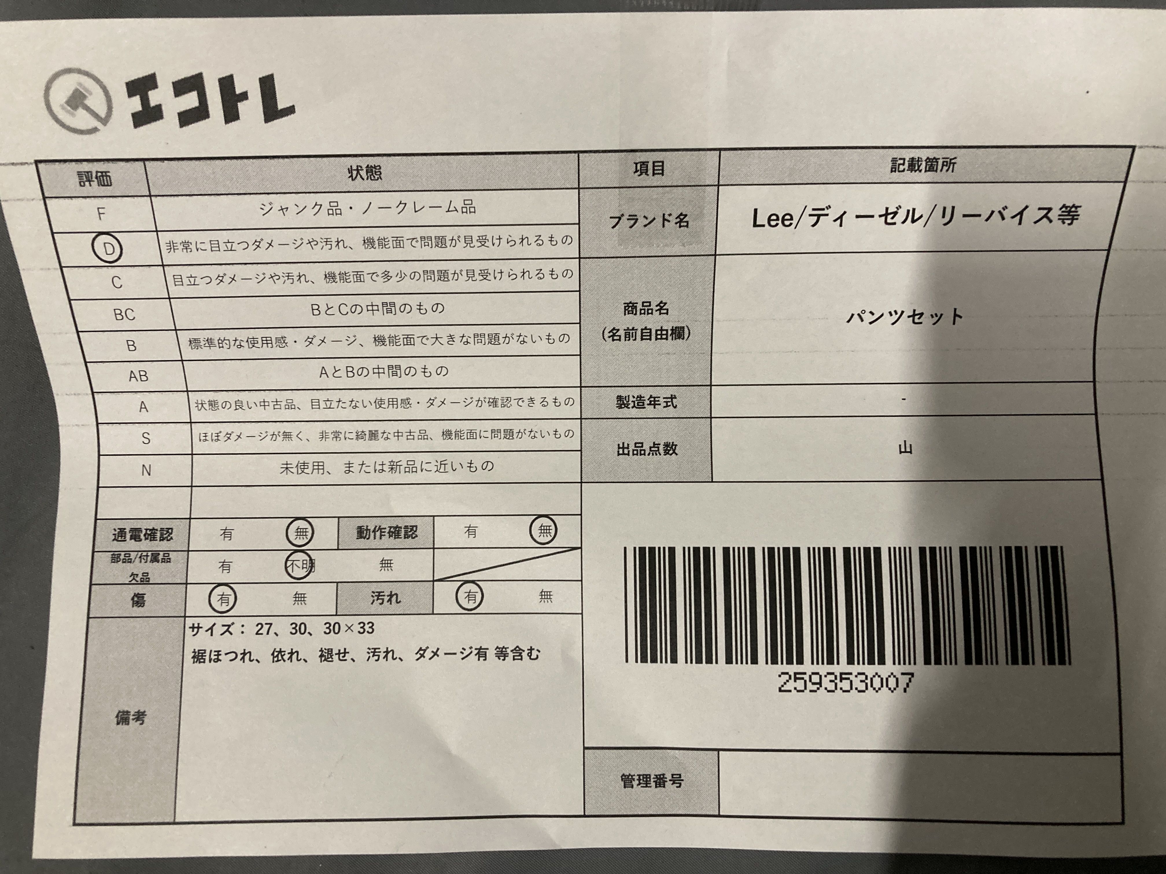 ▼SHIPPING TO JPN ONLY▼ Lee/ディーゼル/リーバイス等 パンツセット","タイプライン":"","カテゴリ":"アパレル","形状コード":"パンツ","付属品コード":"","シリアル・シール・型番":""