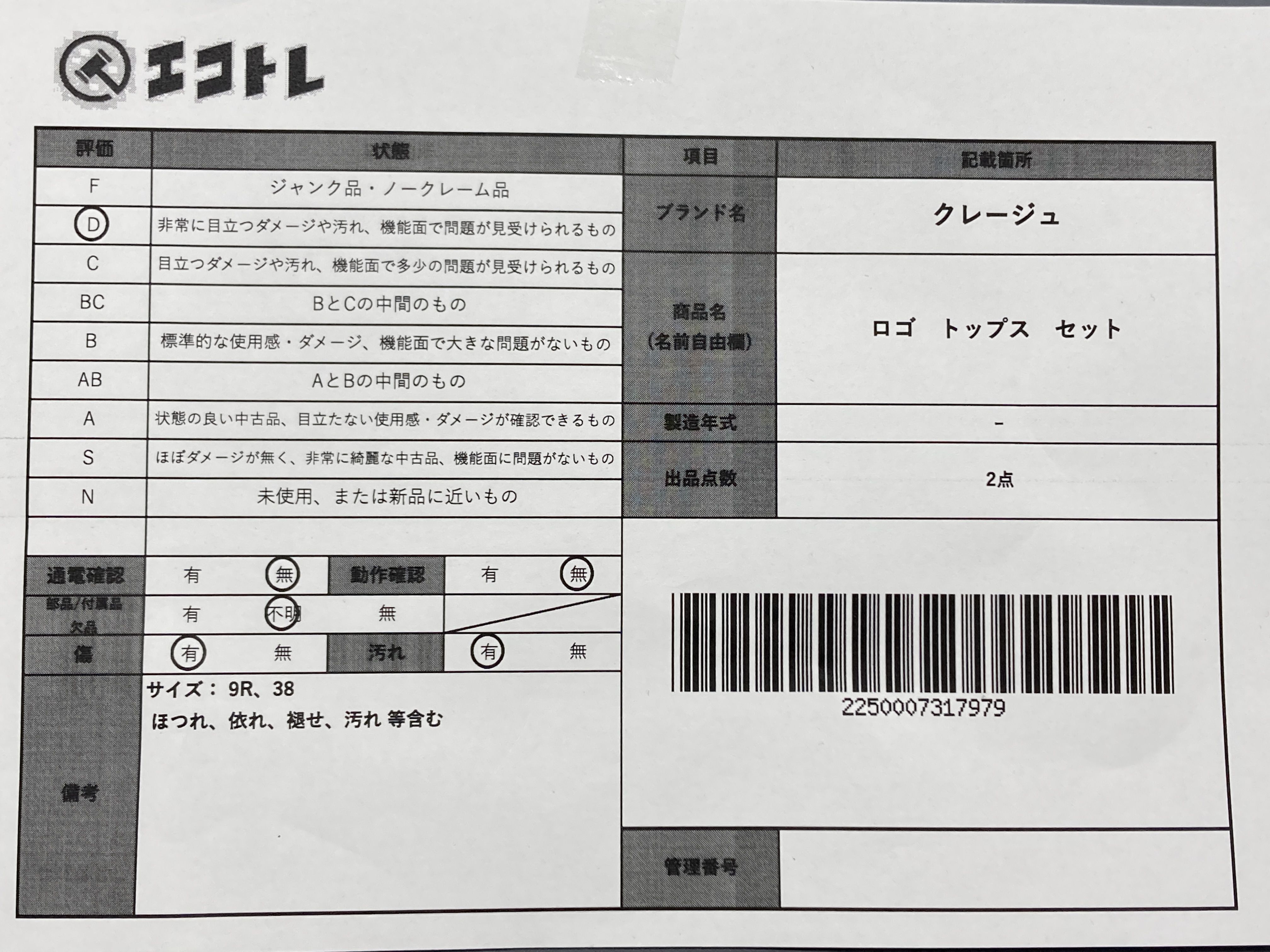 ▼SHIPPING TO JPN ONLY▼ クレージュ ロゴ トップス セット","タイプライン":"","カテゴリ":"アパレル","形状コード":"トップス","付属品コード":"","シリアル・シール・型番":""