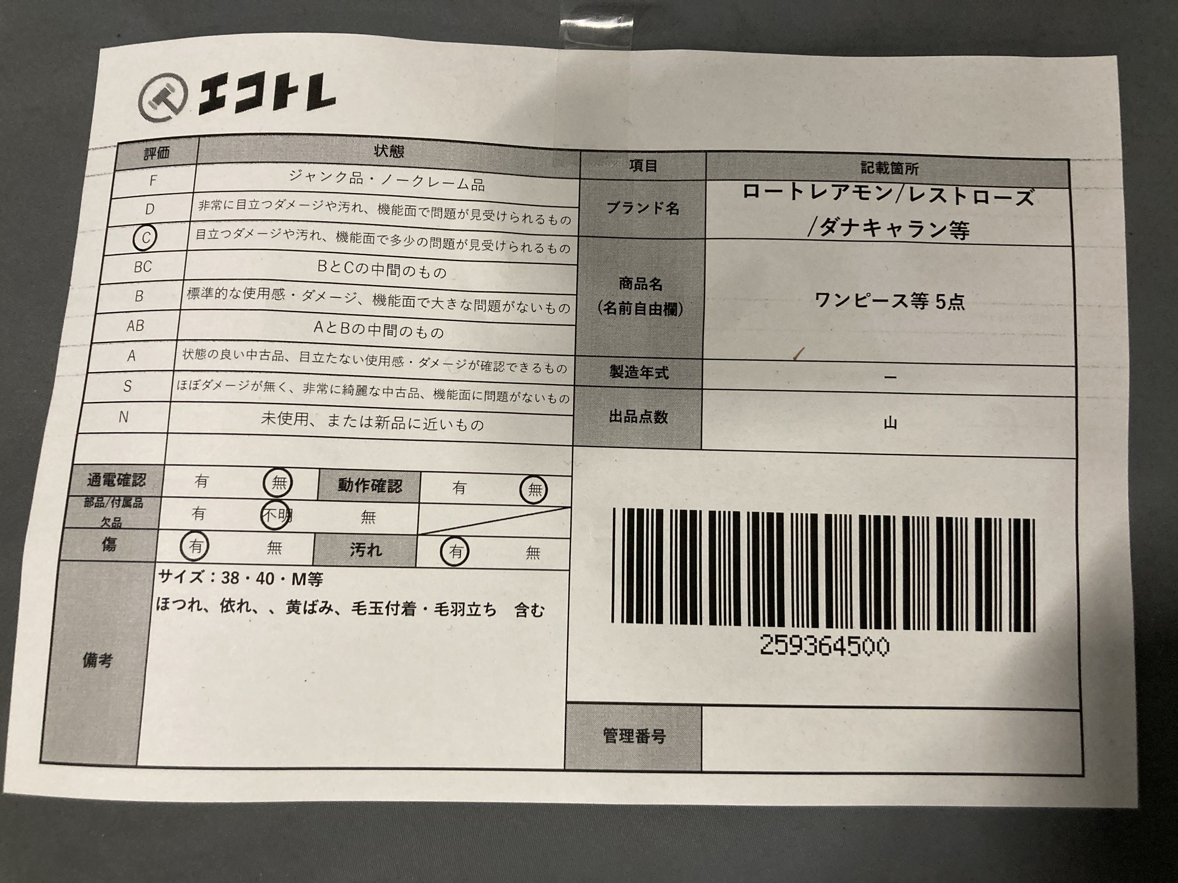 (A_0748)▼ロートレアモン/レストローズ/ダナキャラン等 ワンピース等 5点 その他アパレル