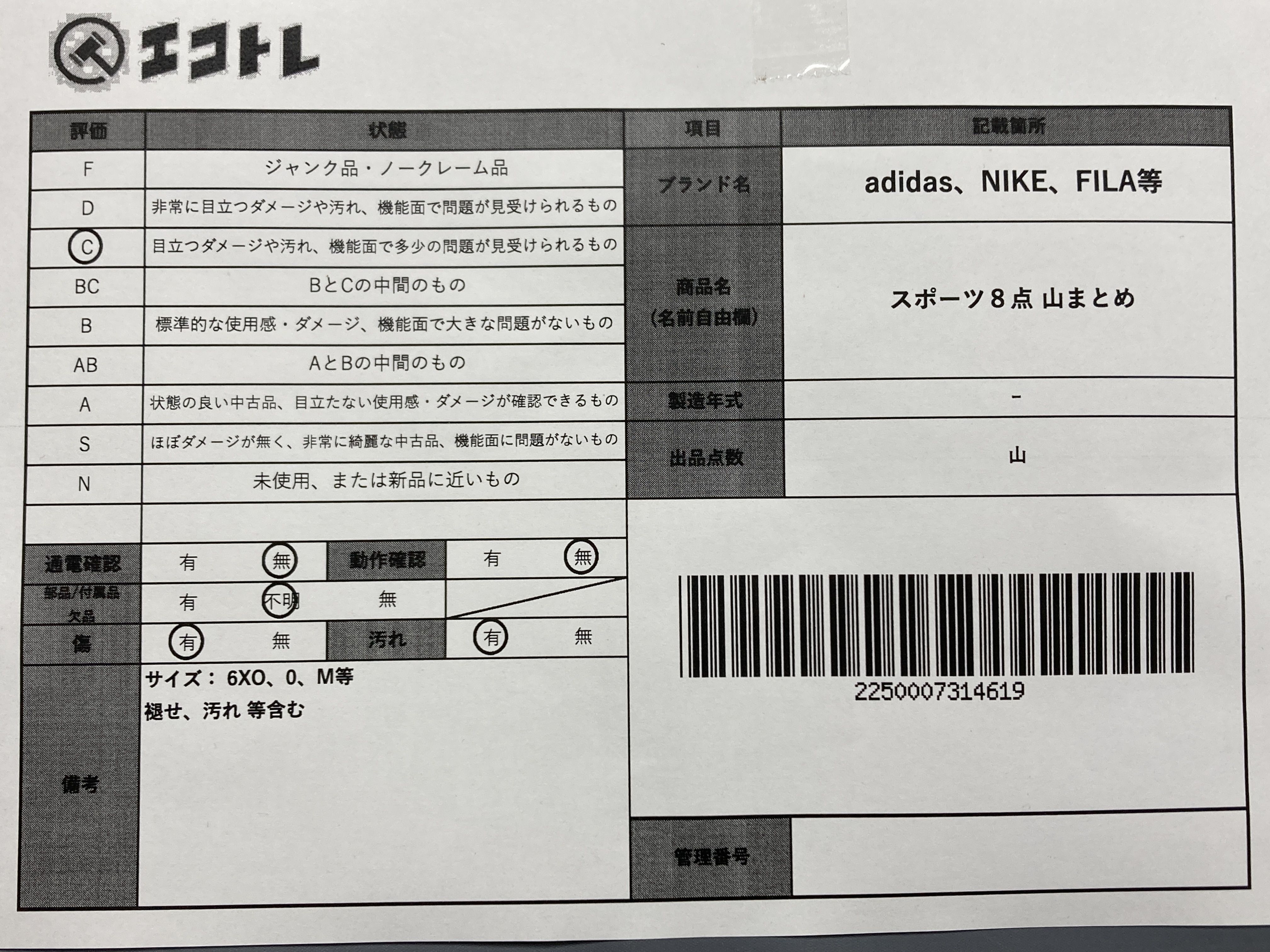 ▼SHIPPING TO JPN ONLY▼ スポーツ adidas NIKE FILA アディダス ナイキ フィラ ルコック 8点 山まとめ","タイプライン":"","カテゴリ":"アパレル","形状コード":"ジャケット","付属品コード":"","シリアル・シール・型番":""