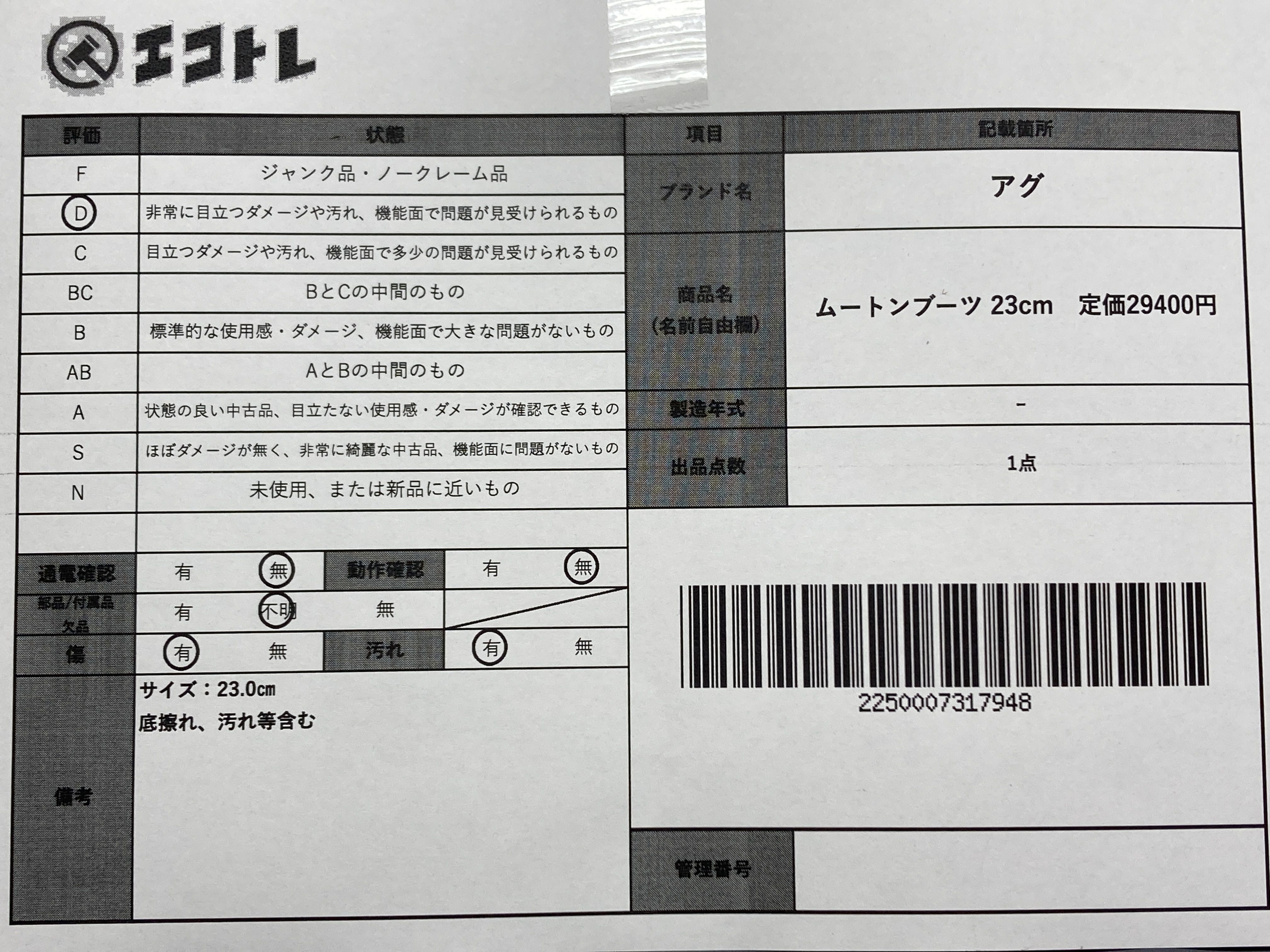 ▼SHIPPING TO JPN ONLY▼ アグ ムートンブーツ 23cm 定価29400円","タイプライン":"","カテゴリ":"靴","形状コード":"レインブーツ","付属品コード":"","シリアル・シール・型番":""